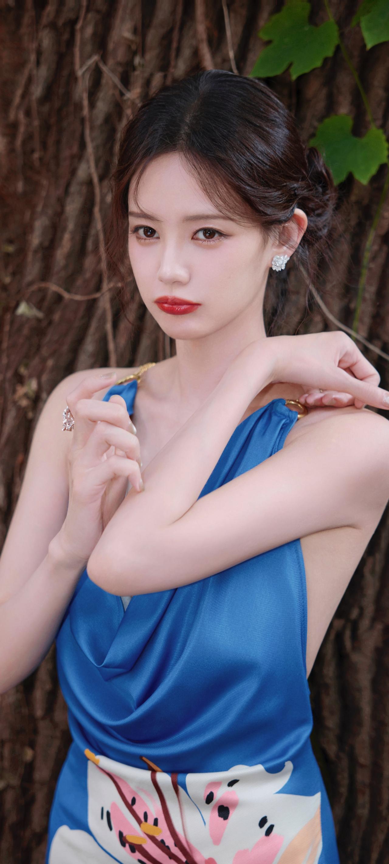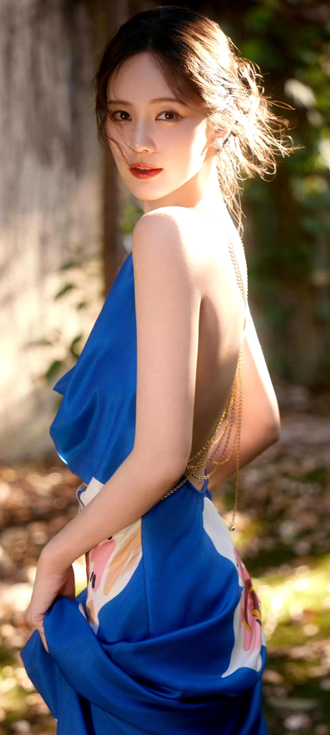 李一桐,优雅蓝裙,花海中的梦幻少女李一桐 淡雅蓝裙照 明星美照 明星时尚