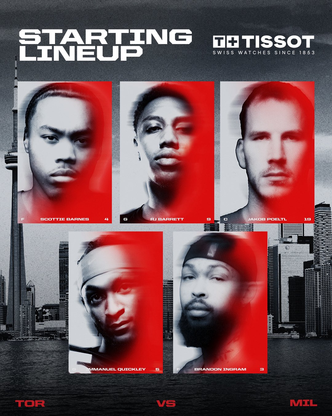 猛龙首发:英格拉姆、巴雷特、巴恩斯、奎克利、珀尔特尔