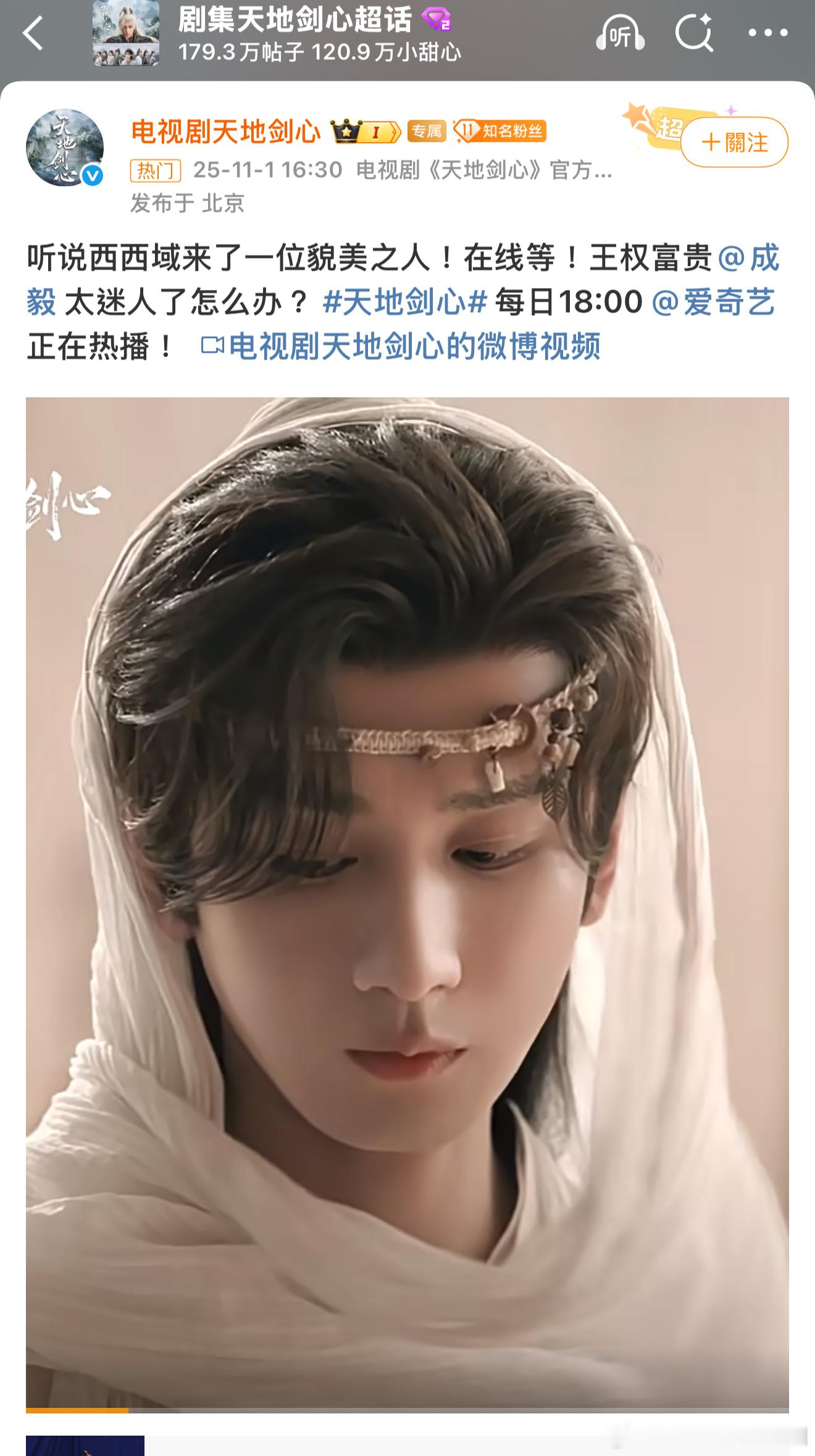 这次真站成毅这边了之前他粉丝说《天地剑心》男主戏份少,我还觉得有点小题大做。
