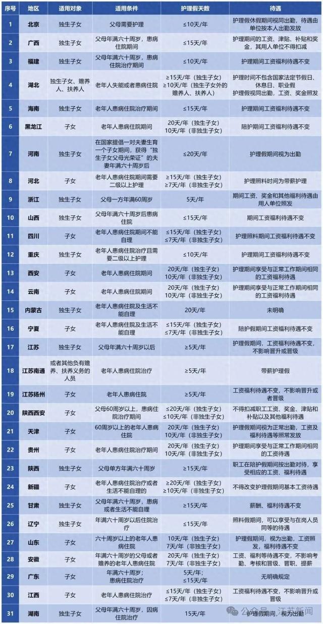 全国已有30多个省市出台了独生子女护理假
