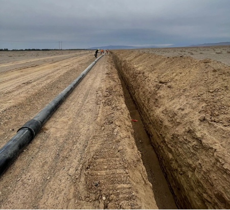 肃马项目途径280公里的戈壁荒漠无人区,是省内途径无人区里程最长的建设项目,面临“无电、无水、无信号”等困难。项目系统谋划、多措并举,全面攻克施工保障难题,为项目全面开工建设提供了有力保障。在电力保障上,锁定通电硬性目标,倒排工期,集中攻坚手续报批、设备采购及开关站、变电站深化设计等关键环节,覆盖无人区全部路段的183公里35kv、253公里10kv电力线路架设完成80%,确保能源动脉率先贯通。在用水保障上,通过机井打水、干渠引水、运输拉水等多种方式,保障了项目用水。同时构建“主干管网+临时管道”供水体系,实现了临时设施与永久供水系统的有效衔接。在物资保障上,针对项目地处戈壁荒漠、自然环境特殊、资源组织难度大等现实挑战,一方面用好用足甘肃公交建集团公路全产业链优势资源,一方面建立动态储备机制,确保“仓里有料、库中有机”,为项目后续大规模、高效率的实体工程建设提供有力物资保障。在驻地建设上,积极推进林草、普通临时用地等专项审批,全力推进项目驻地、试验室及拌合站等关键设施的建设进度,确保项目全面开工前具备生产与生活入驻条件。