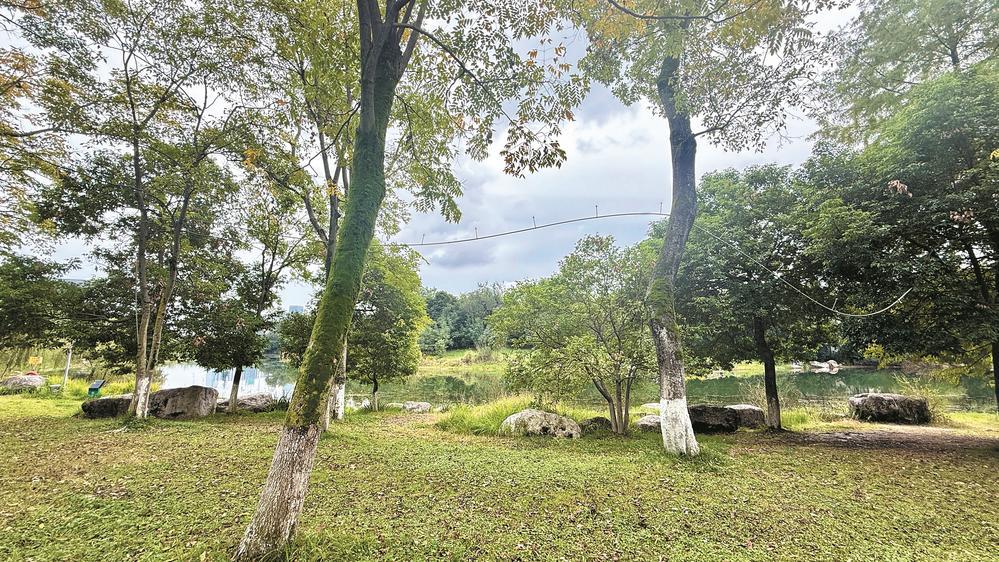记者在小区内观察发现,该小区绿化覆盖率较高,楼栋周边树丛茂密。透过树丛缝隙及抬头观察高层外立面,暂时未发现住户玻璃存在明显破损痕迹。为进一步核实情况,记者随后前往锦城湖公园岸边。打开手机地图软件了解发现,涉事小区与锦城湖公园的直线距离不足300米。在湖边一处无遮挡的开阔地带,记者肉眼可清晰看到小区临湖楼栋中未被绿化遮挡的住户窗户。