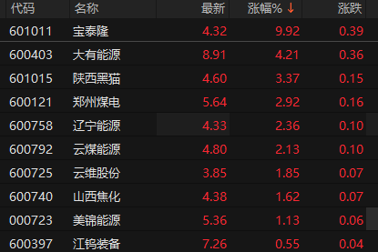 煤炭板块震荡走高 宝泰隆涨停