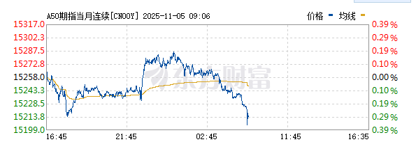 上证报中国证券网讯11月5日,富时中国A50指数期货在上一个交易日夜盘收跌0.24%的基础上低开。截至9时06分,主力合约跌0.32%。