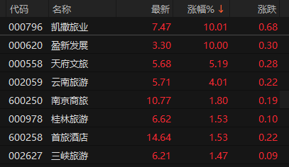 上证报中国证券网讯11月5日早盘,在线旅游概念股震荡走高,截至10时09分,凯撒旅业涨停,盈新发展走出3连板,天府文旅涨超5%,云南旅游、南京商旅、桂林旅游等跟涨。