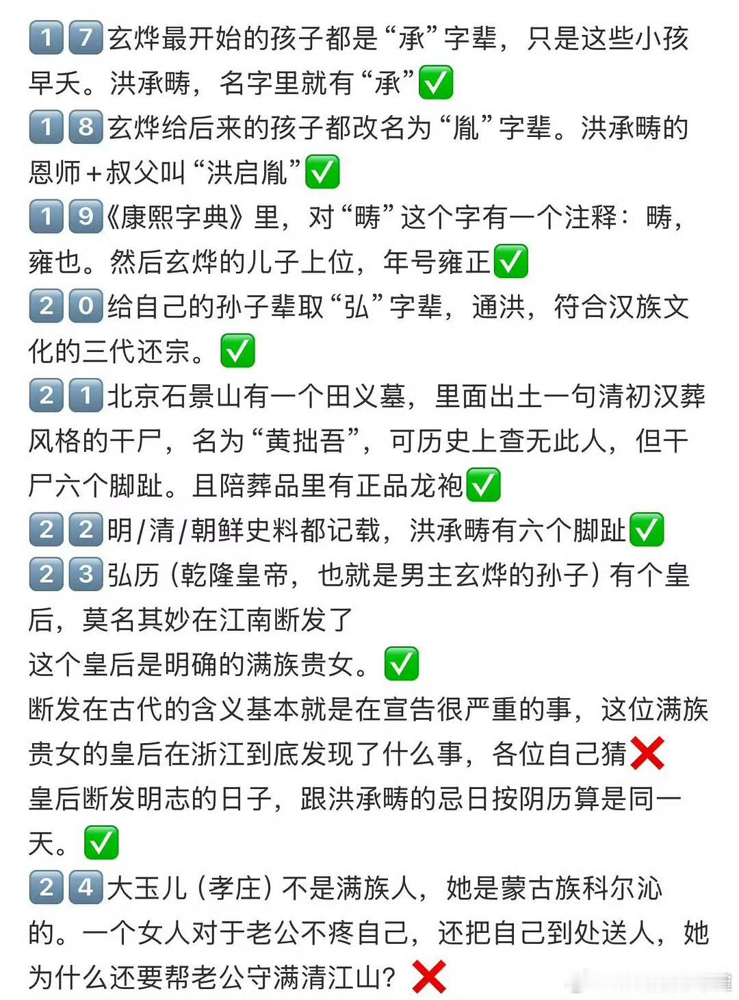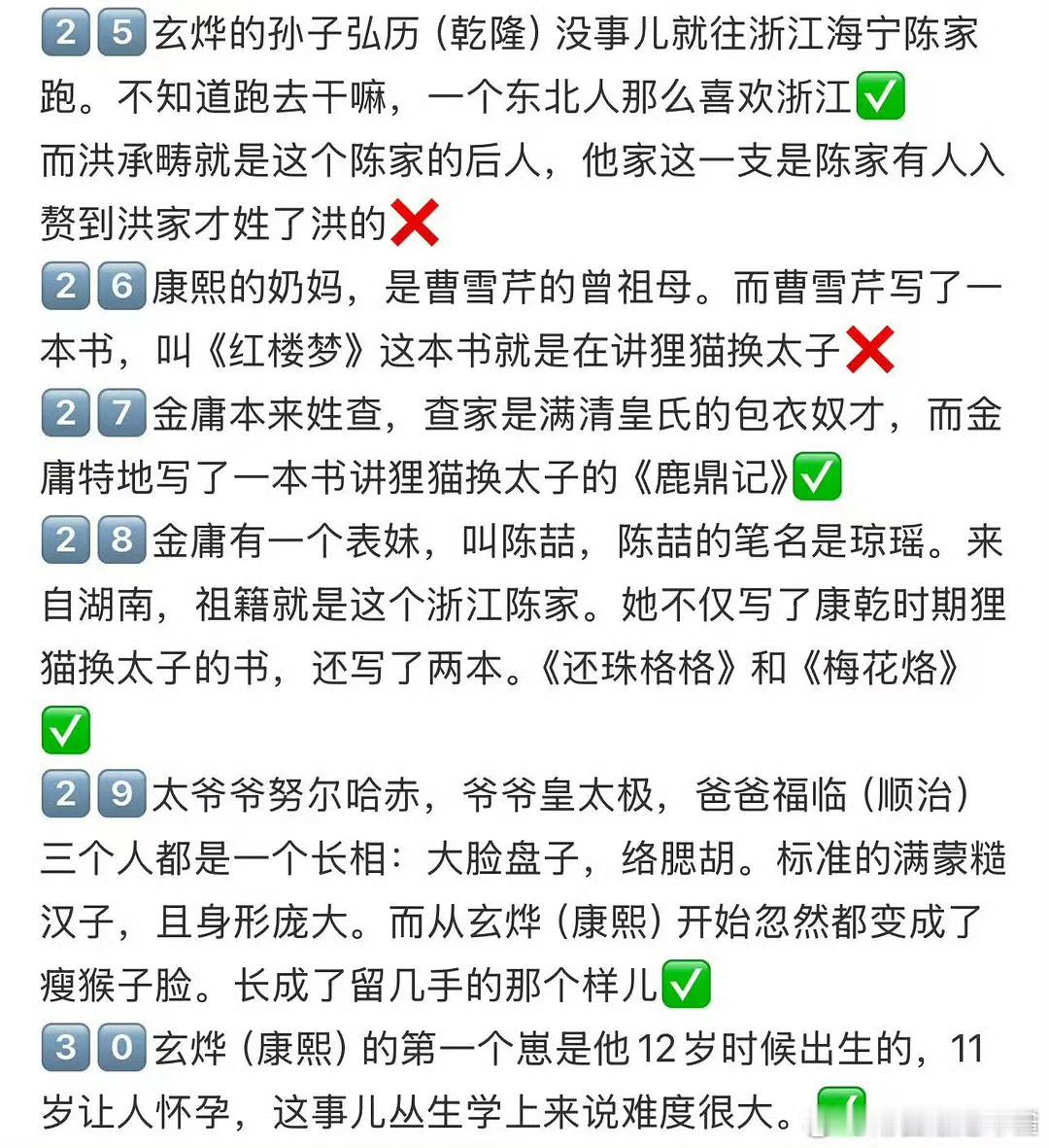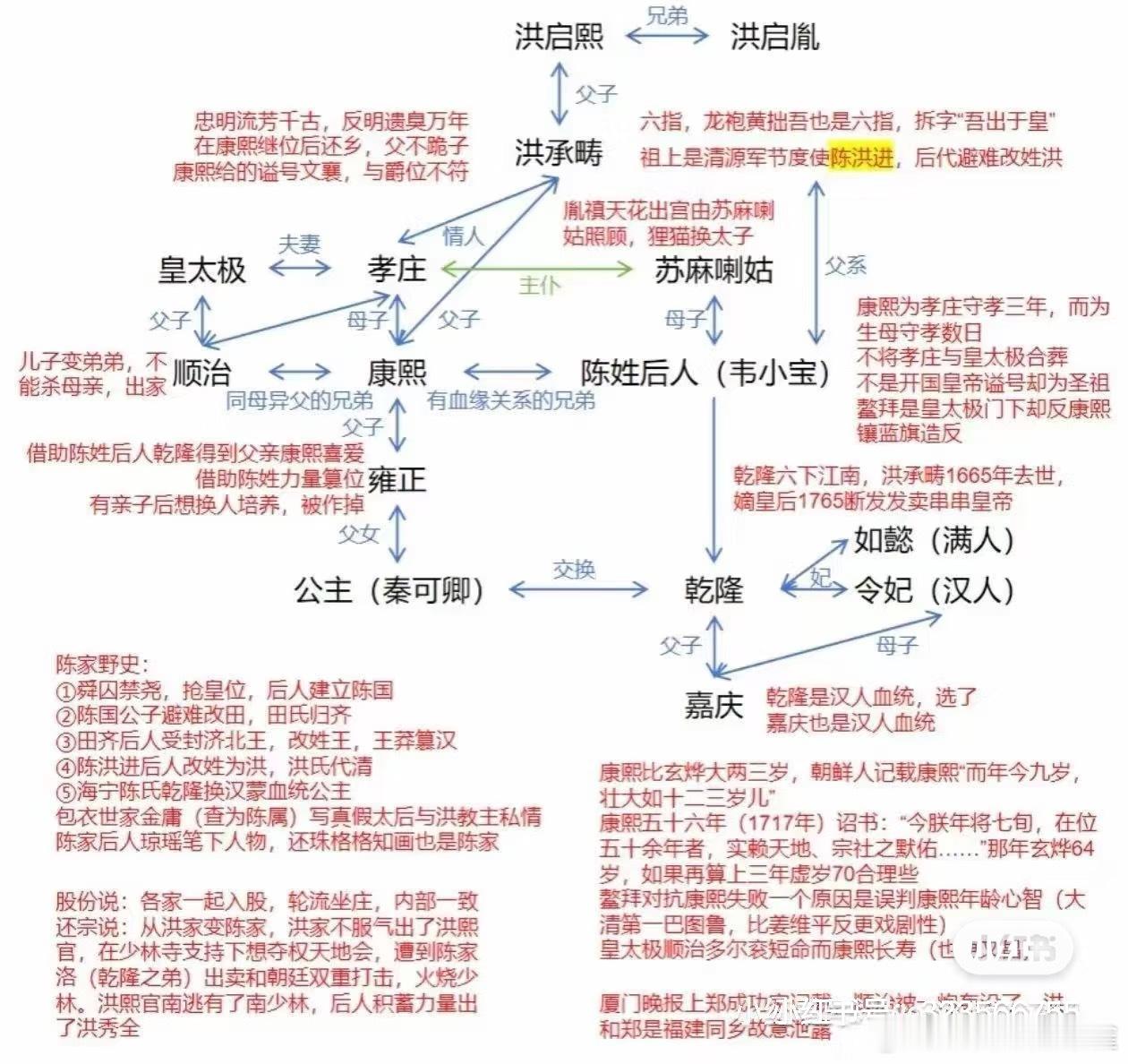 康熙是洪承畴换种后代这种野史,其实真假不重要了,它本质上就是一种民族解构,一种意识形态战争,越是不敢公布DNA检测,这些话就越是传的沸沸扬扬。当然从目前的证据链来说,可真是不好说[允悲]