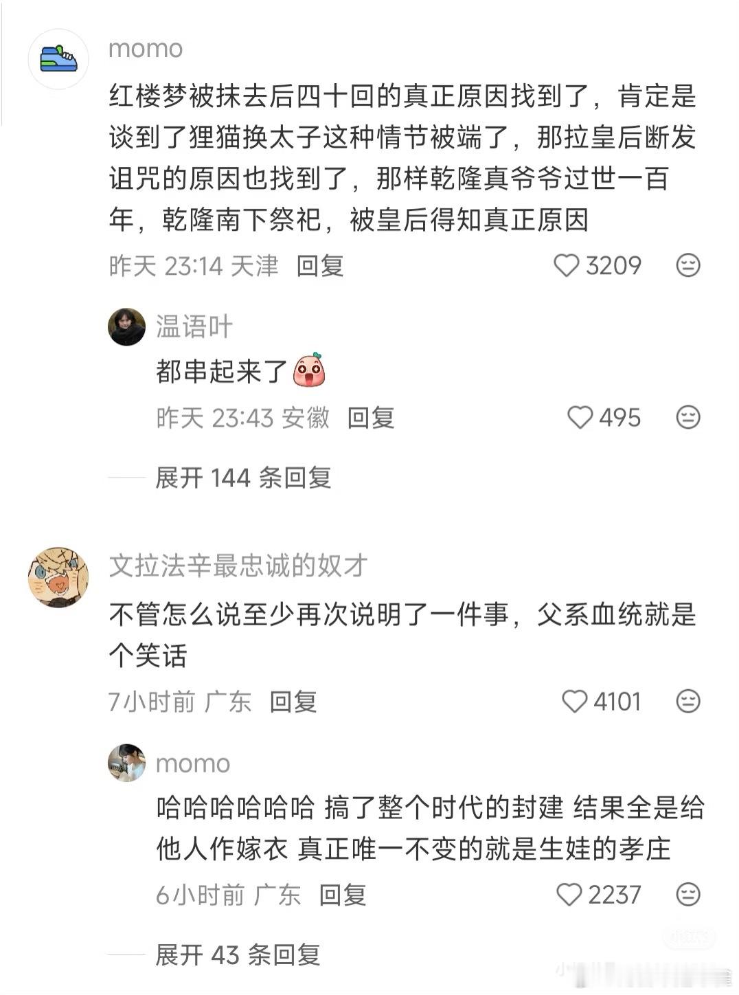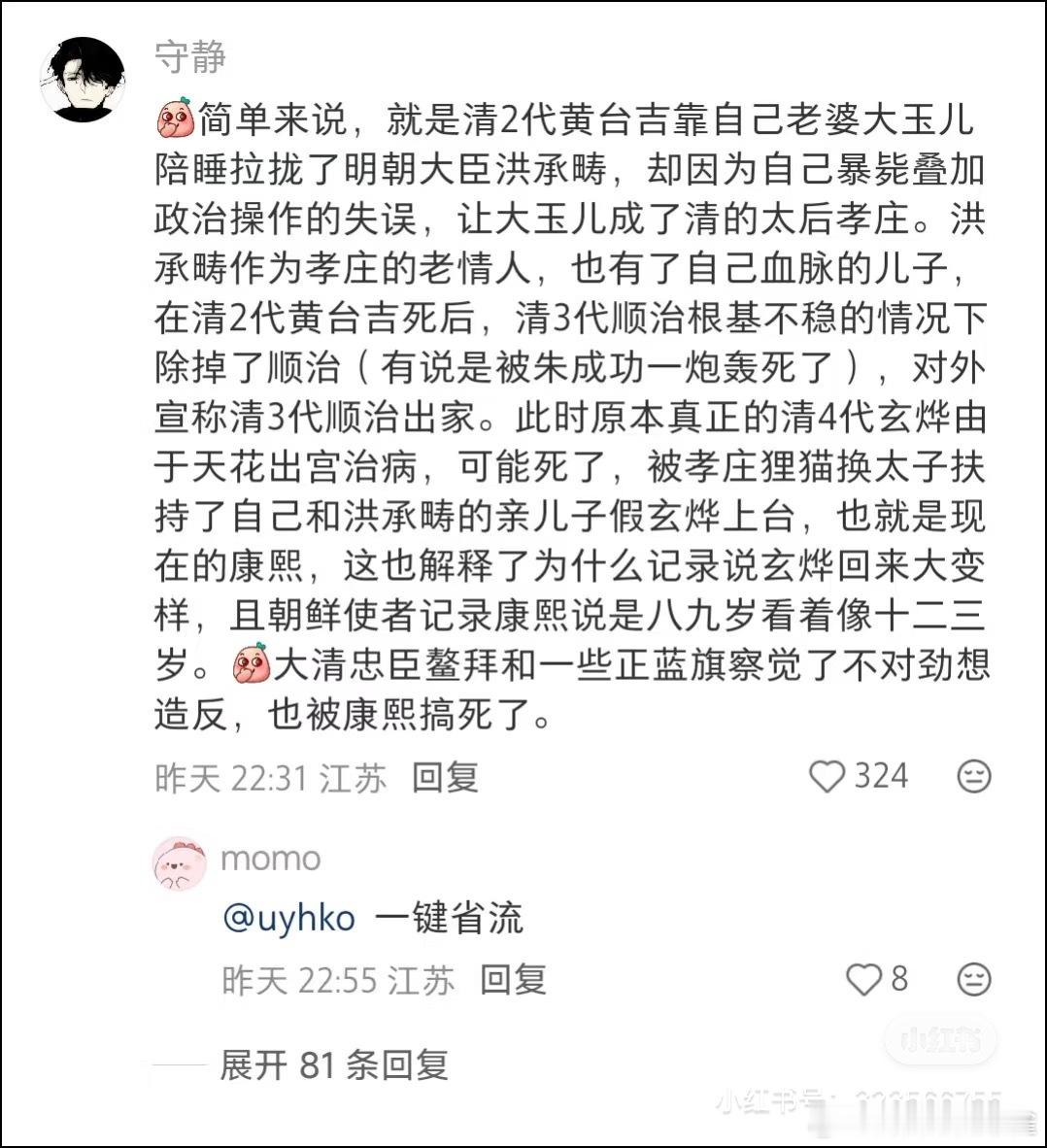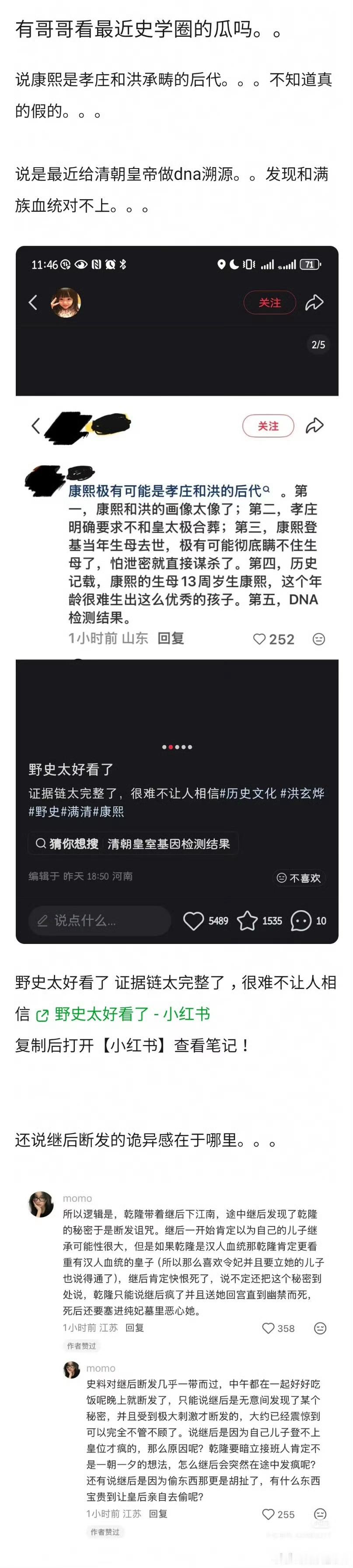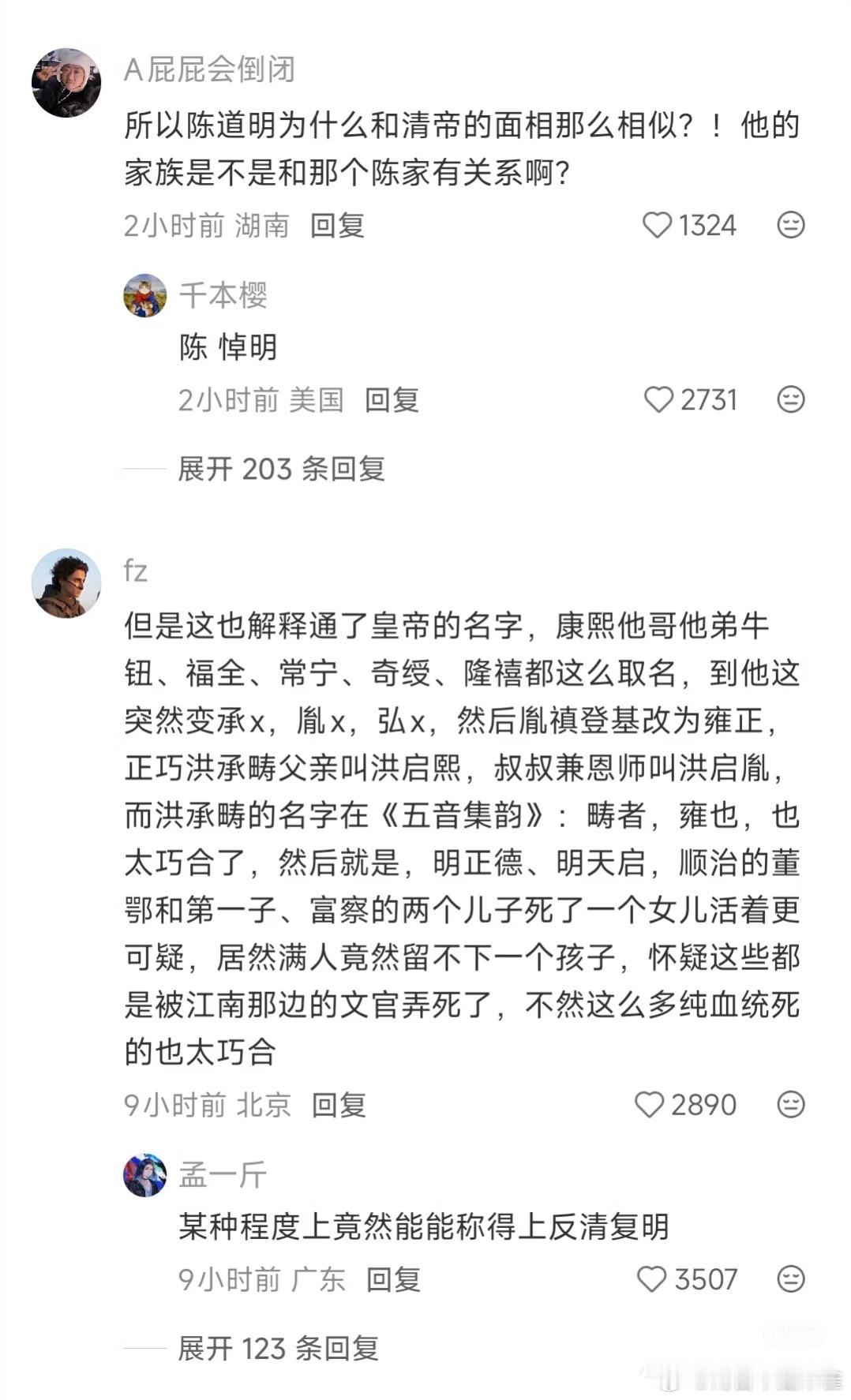康熙是洪承畴换种后代这种野史,其实真假不重要了,它本质上就是一种民族解构,一种意识形态战争,越是不敢公布DNA检测,这些话就越是传的沸沸扬扬。当然从目前的证据链来说,可真是不好说[允悲]