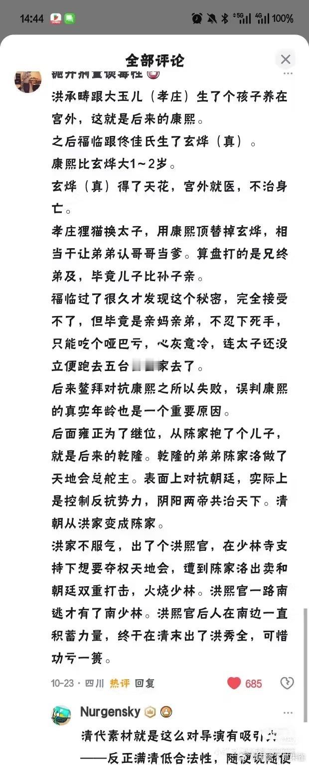 康熙是洪承畴换种后代这种野史,其实真假不重要了,它本质上就是一种民族解构,一种意