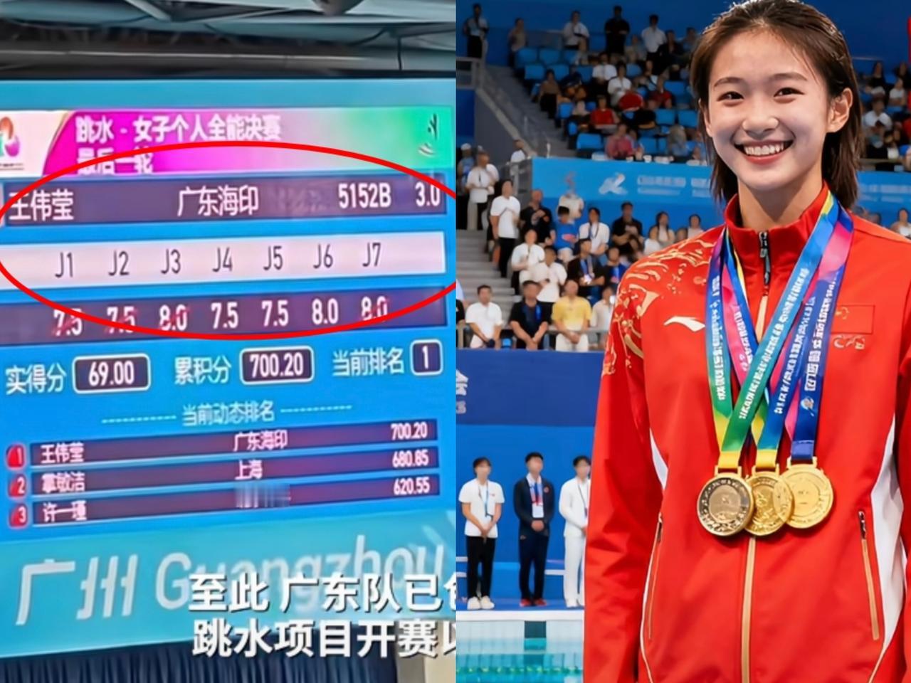 真是服了, 观众越多越能打, 王伟莹你用了什么绝招! 王伟莹: 能把观众的鼓励转化为动力, 觉得自己特别幸运。 赛后王伟莹表示, 这次在“家门口”比赛, 状态特别好, 比赛也特别顺利。 “前两轮就把分差拉开了, 有些动作也做得比较稳。 每一跳都跟我平时训练的一样, 我觉得这可能就是我最大的优势吧。” 王伟莹说, 她特别喜欢在有观众的场地比赛, “观众越多, 越有热情。 能把观众的鼓励转化为动力, 我觉得自己特别幸运。”