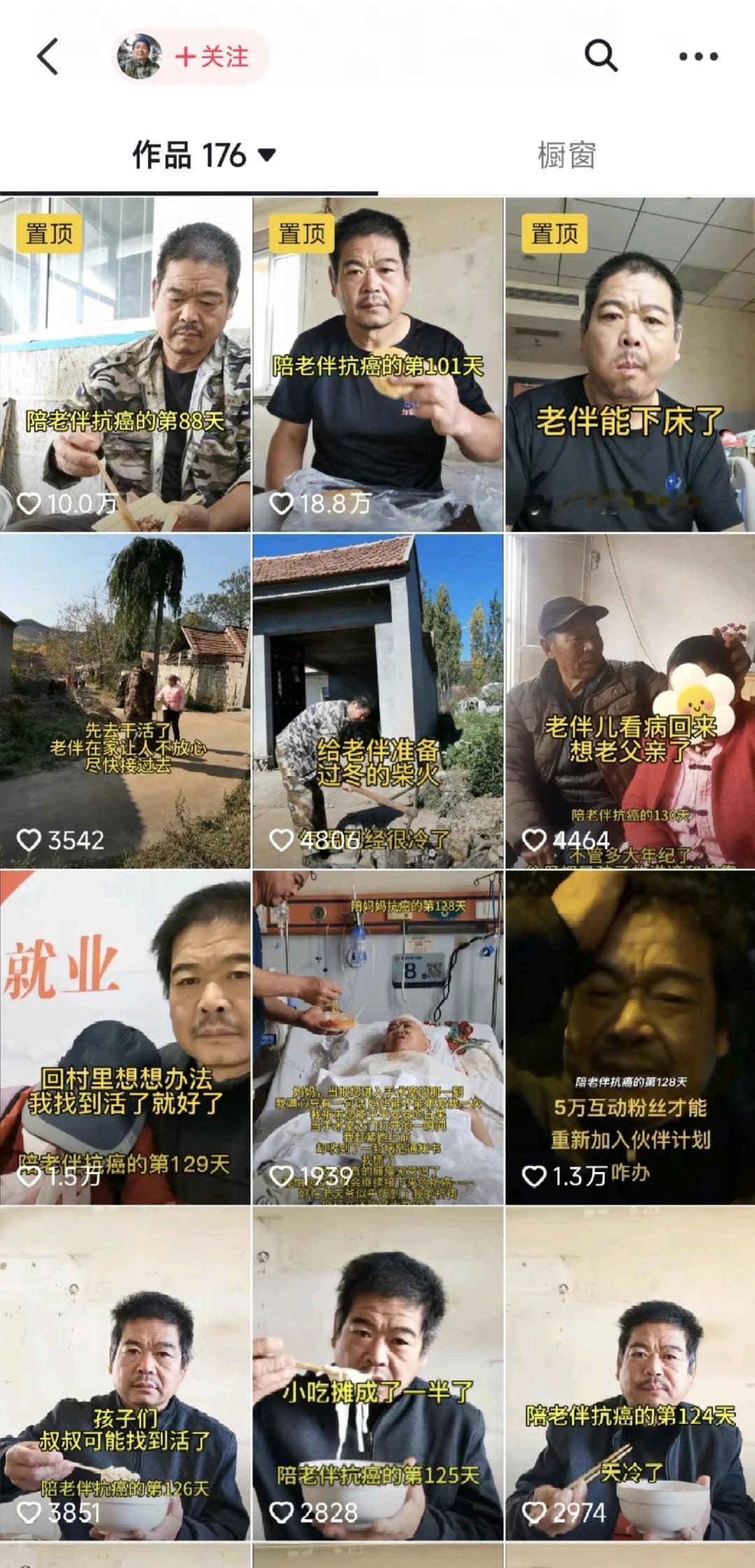 无意中在某音刷到这个叔叔,点进去一看都是陪阿姨在异地抗癌的视频,每天也都吃的简简单单的。前几天刷到叔叔带着阿姨先回老家了,从天津到山东,买的是坐票,叔叔一方面心疼阿姨生病还要坐那么长时间的火车,一方面也恨自己不争气,扇了自己几巴掌,看得我心里太难受了😭回家后叔叔又去工地打工了,出发前安排好阿姨的衣食起居,不舍、心疼阿姨,但又没办法……感动瞬间 人间有大爱 希望更多人看到 爱心传递温暖人间 民生 让爱传出去 网络的力量