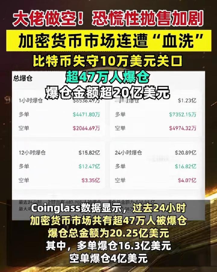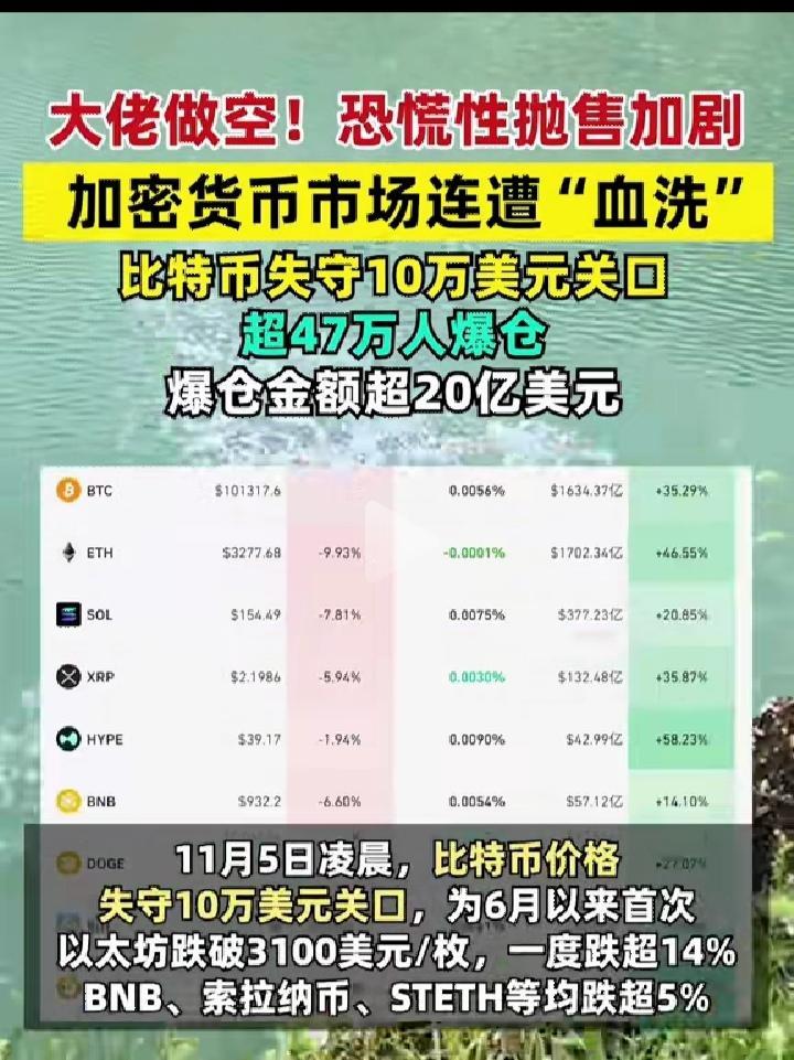 币圈血洗,一夜47万人爆仓!比特币,收割全球财富的金融游戏! 11月5日,加密货币市场迎来血洗时刻,比特币价格一度跌破10万美元关键关口,创下6月以来最低水平。这场暴跌引发连锁反应,全球超47万投资者遭遇强制平仓,爆仓总额将近20亿美元。 导致这场动荡的幕后推手,是美联储。其主席鲍威尔释放紧缩信号,打破市场对宽松政策的期待,直接引发投资者信心动摇,大量资金撤离。 比特币从未摆脱对宏观政策的依赖,美联储的每一次表态,都在重塑币圈生存逻辑。 比特币,绝非某些人鼓吹的“数字黄金”,其本质,是一场精心设计、收割全球财富的零和金融游戏,从机制到实践,都充斥着财富转移的残酷逻辑。 游戏的核心,是金字塔式的财富掠夺结构。早期持有者通过近乎零成本的挖矿,积累到了海量代币,只需等待后续投资者入场接盘,便能套现巨额利润。这种收益,并非来自生产性增值,完全依赖“后浪补前浪”的资金接续,与庞氏骗局“拆东墙补西墙”的逻辑,完全如出一辙。所谓“去中心化”,不过是迷惑性外衣,99%的交易仍发生在中心化交易所,这些平台掌握私钥、交易数据与清算规则,可随意修改杠杆、制造宕机,甚至配合庄家猎杀散户仓位。 无价值锚定的价格操控,是收割的关键手段。比特币既不产生现金流,也无实际使用价值,价格波动完全依赖投机情绪与资金炒作。2025年10月的暴跌中,162万投资者爆仓,191亿美元灰飞烟灭,而交易所单日出手续费与资金费率收入超5.7亿美元,庄家与平台成为唯一赢家。 这场游戏的不可持续性,注定多数人沦为祭品,以至于血本无归。比特币要维持价格上涨,需不断吸引增量资金,但全球适格投资者群体存在物理边界,长期支撑指数级增长在数学上根本不可能。数据显示,90%的合约交易者最终亏损,散户平均存活期仅11周,他们的本金成为系统运转的燃料,持续喂养着早期持有者、交易所与做市商三类既得利益者。 从本质上看,比特币就是一场以技术为包装的财富再分配骗局,其每一轮暴涨暴跌,都是对全球普通投资者的精准收割,最终只会加剧贫富分化与金融风险。 比特币行情 比特币价格 加密货币行情 比特币挖矿潮 比特金π 加密大暴跌