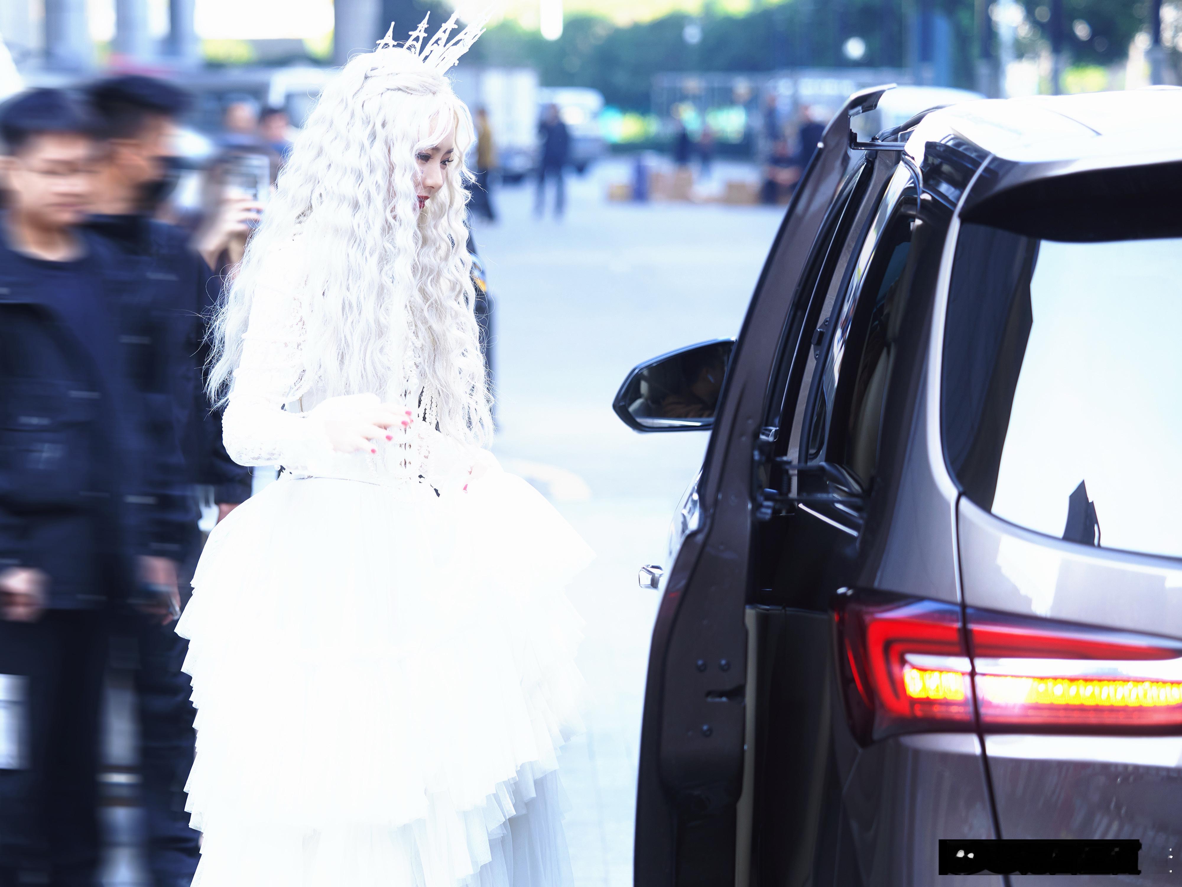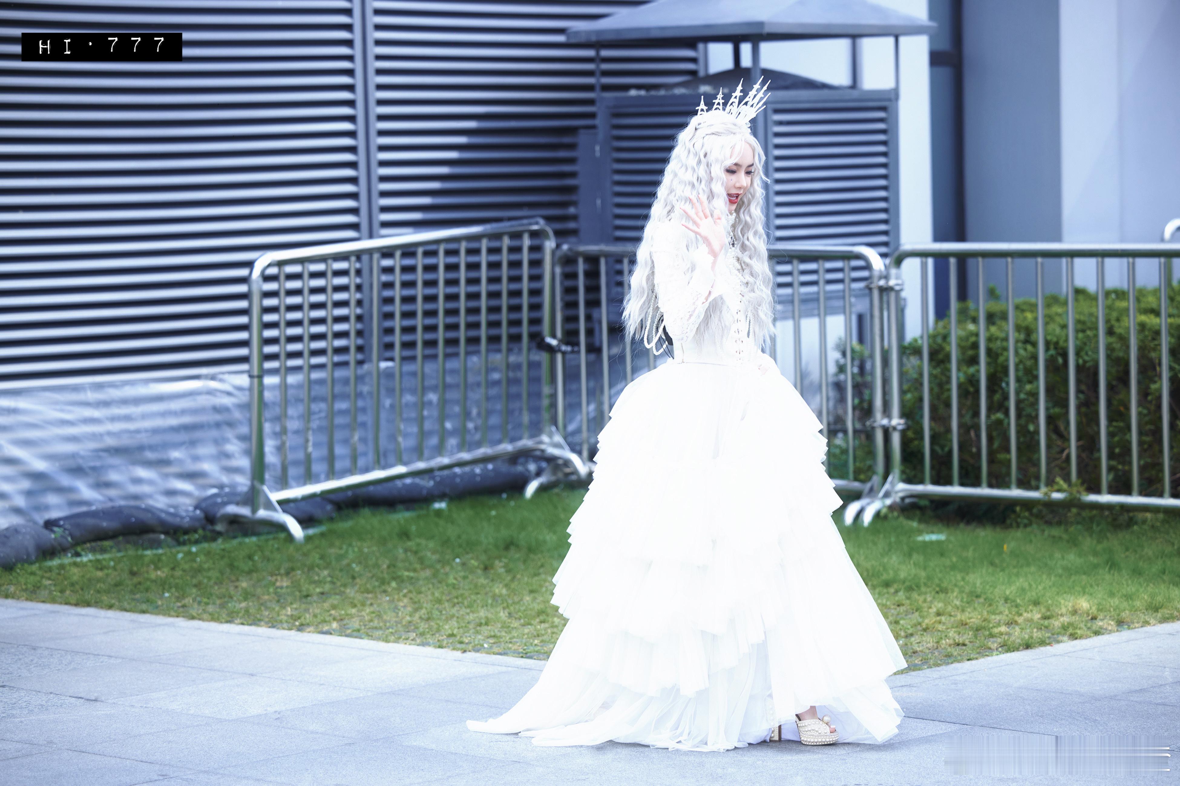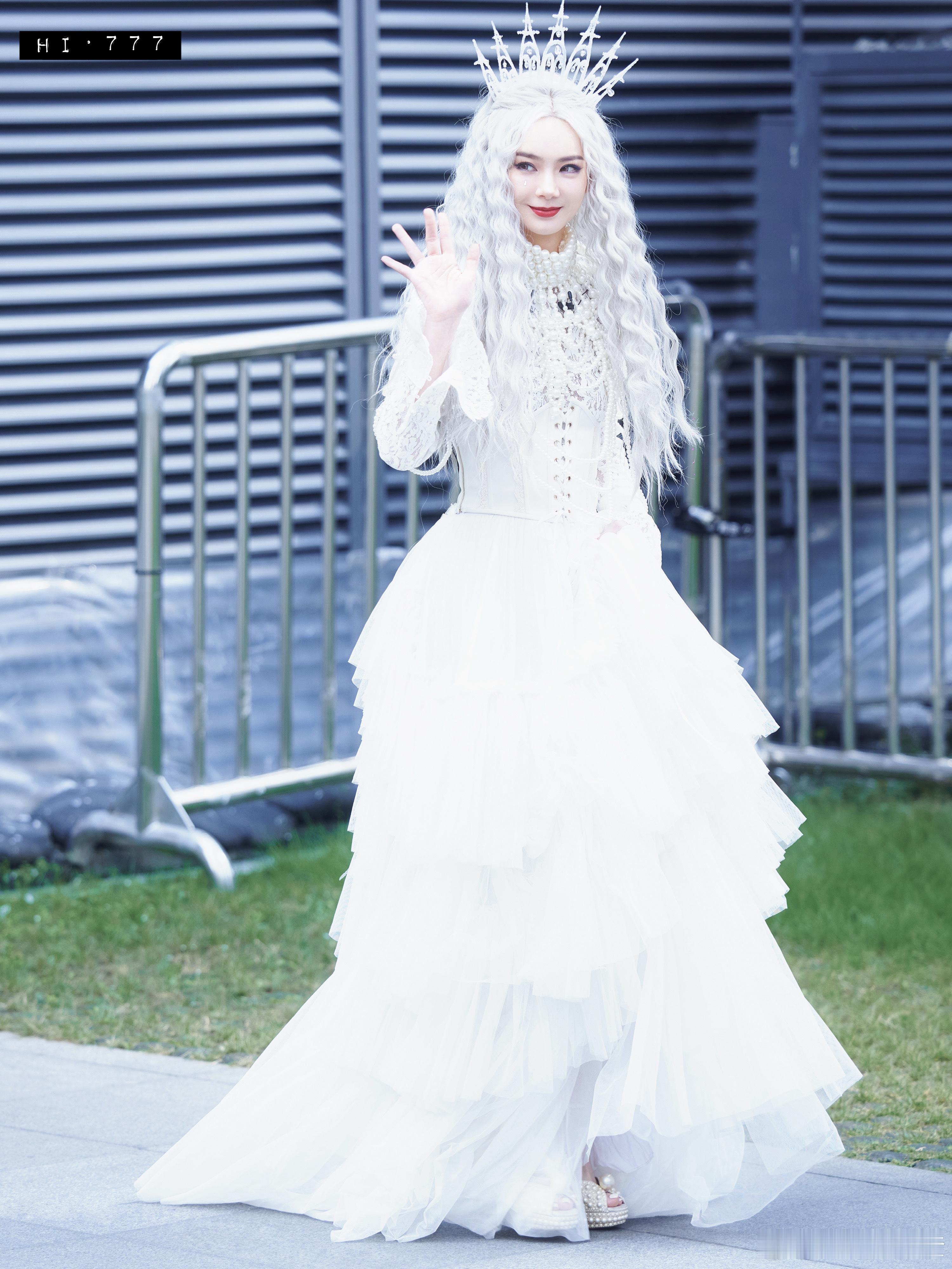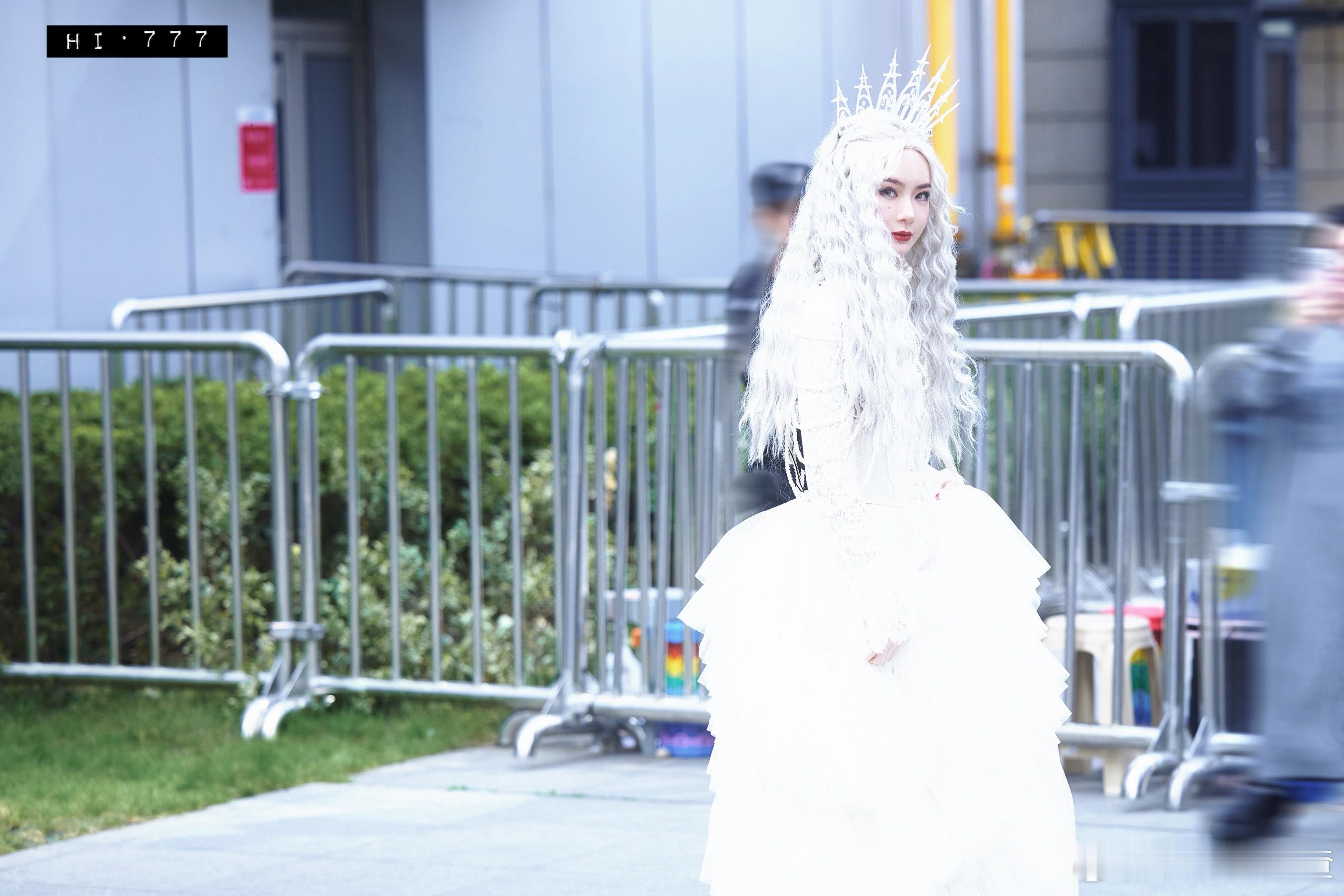 戚薇大侦探演唱会路透 这身白皇后cos可以直接进年度造型TOP3!细节到发丝的银色流光,裙摆的立体刺绣,戚薇把二次元角色带到三次元了!