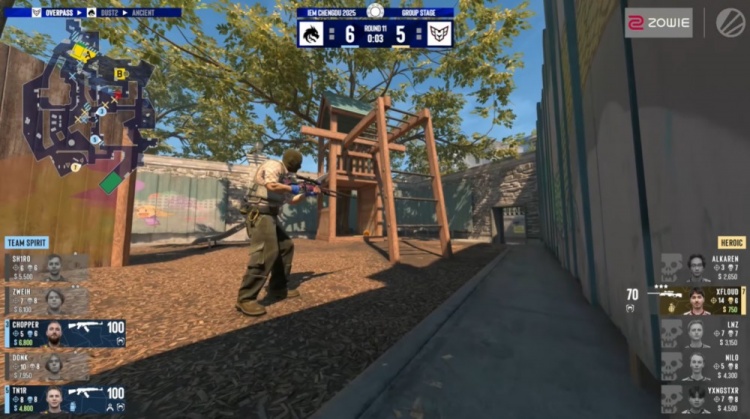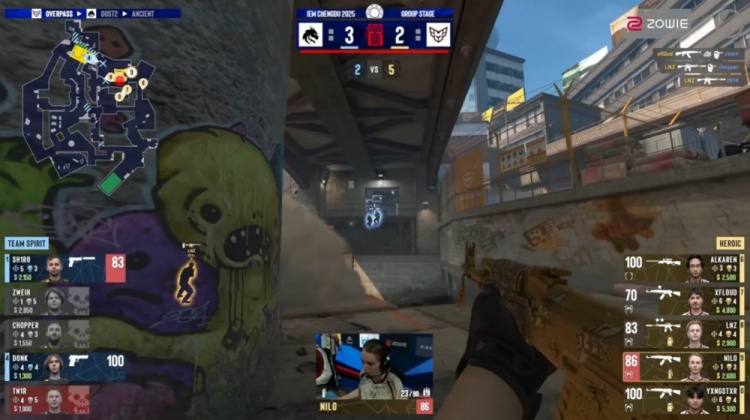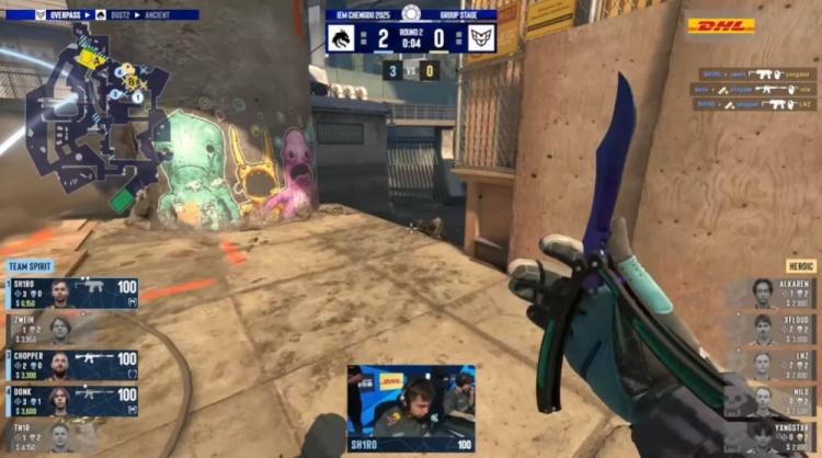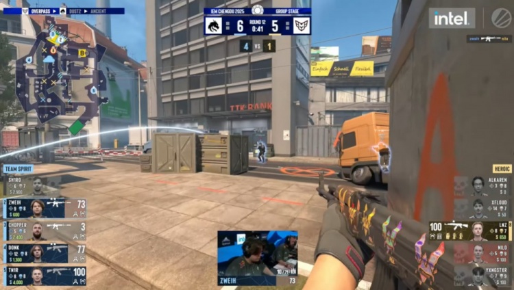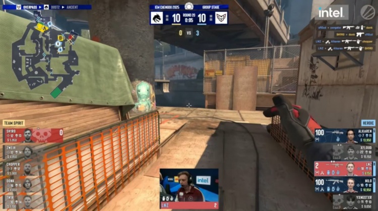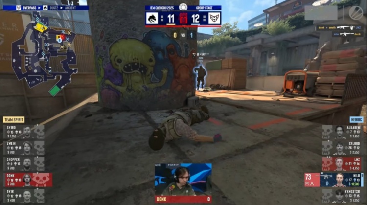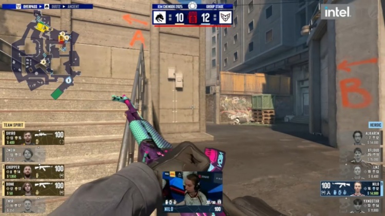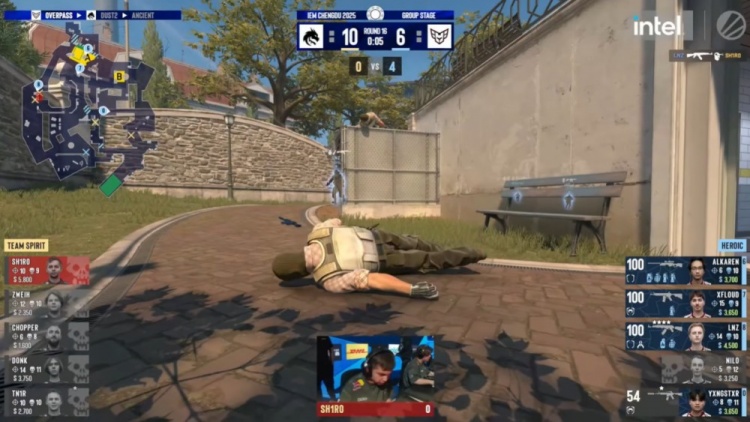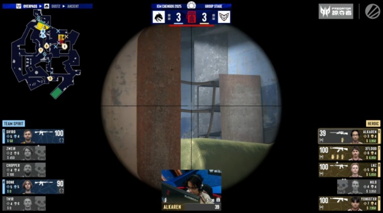 第6局Spirit纯E放空B点,X队轻松拿信息进B下包,Spirit回防B点,LNZ轻松架工地双杀,donk一发沙鹰带走Alkaren后被nilo带走,绿龙3-3X队。