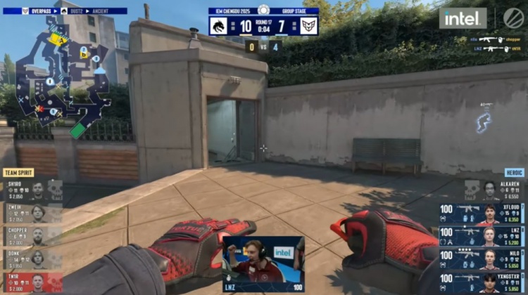 第7局回到长枪回合,Spirit没人买钳子,tN1R被短管摸出来的nilo击杀,随后nilo再摸长管击杀chopper,LNZ补掉杀掉nilo的zweih,X队在B下包,sh1ro与donk在A保枪,绿龙3-4X队。