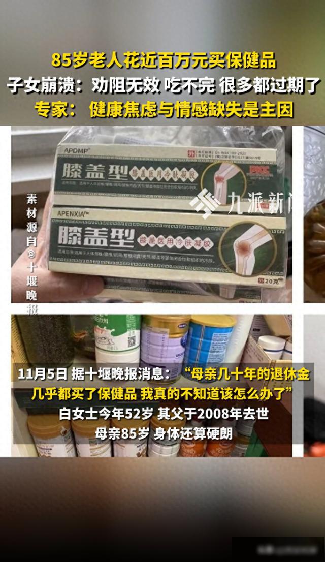 “从母亲第一次购买保健品到现在粗略算估计已经有近百万元。她住着一套约70平方米的房子,从床底到储物柜,从门后到厨房,到处都塞满了五花八门的保健品吃不完,很多都过期了。”白女士说,希望有人能帮帮她母亲,让她别再这样买保健品。同时希望通过她的例子,提醒其他老人和子女。