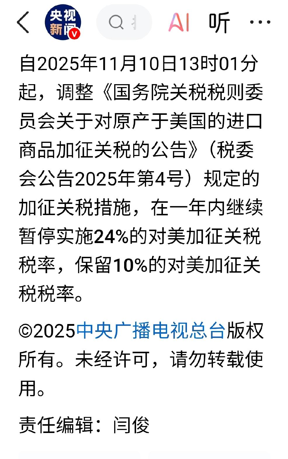 中美:证明与开始 个人观点:证明我们走的这条路是正确的,只有抗击美国不合法,不合规的关税政策,才能保护自己,发展自己。 暂缓一年又标志着竞争刚刚开始,需要我们保持警惕,保持初心,继续奋斗,继续高质量的,高标准的对外开放,坚持独立自主,坚持原创创新,坚持多边主义,走好走优自己的路。 肯定成绩,展望未来,关注当下。