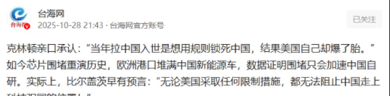快讯!快讯! 美国方面突然宣布了针对先进芯片与设备的新一轮限制。 就这件事我的态度很直接:卡得越紧,中国自研越快,路径已经跑通了。 先看芯片链条。自2019年起,多家中企被列入限制清单,2022年与2023年限制继续加码。同期,国产EDA、设备、材料投入明显增加,28纳米量产能力稳定扩展;多家研究机构的拆解报告提到,国产7纳米产品已出现。对照之下,美企对中国市场的依赖仍在,英伟达等不断推出适配型号。说明封堵并未让产线停摆。 通信和算力这头数据更直观。公开资料显示,中国5G基站数已超300万站,覆盖面持续扩大,带动设备与应用协同推进。与一些国家覆盖不均、建设节奏偏慢相比,大规模网络反过来压缩了研发迭代周期。 交通装备的产销也给出反馈。复兴号350公里时速运营多年,CR450样车进展公开。欧洲多座港口出现滞港新车,媒体称其中包含不少中国电动车;与此同时,市场调查与审查持续进行。阻拦并未改变产品向外流动的趋势。 在导航与航天方面,北斗于2020年完成全球组网,终端已在物流、渔业、应急等行业普及。全球用户仍大量使用GPS,但多系统融合成为主流,单点依赖正在降低。 再看企业层面。高通、英特尔、英伟达等财报长期披露中国营收占比不低。限制带来不确定,它们通过许可申请与产品调整来适配。市场与合规同时约束,路径多是折中推进。 人才回流也在加速。官方历年数据表明,留学回国比例持续提升,集成电路、人工智能、材料等方向的团队扩容,项目更注重工程化与量产落地,补上了关键环节的人手与经验。 关于“把中国拉进规则场”这类表述,外媒与演讲材料有不同解读,具体措辞不宜过度演绎。比尔·盖茨在多次采访中指出,限制难以改变中国在科技上的进展方向。这两条放在一起看,长期大封堵的成本高、效果有限,更像是一场旷日持久的掰手腕。 把时间线理一理:2016年量子科学实验卫星上天,2020年北斗全球组网,2023年以来先进工艺国产产品被多次拆解验证,2024年国产AI大模型数量增加,算力中心持续上马。每一步都有场景落地。 由此形成的节奏基本清晰:出现卡点,增加投入,应用拉动,再反哺研发,循环向前。外部变量会打乱节拍,但难以改写方向。 我的结论是:限制还会反复,但中国的自研体系已经具备自我加速能力,越打压,越逼着把短板补齐。 看向当下,生产线在扩能,港口在周转,实验室在迭代,订单在验证。就按这个节奏继续推进即可。