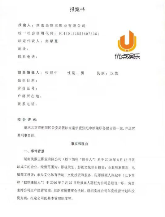 据悉,近日湖南美猴王影业有限公司向北京经侦报案,指控张纪中涉嫌职务侵占,数额高达8163791.43元。