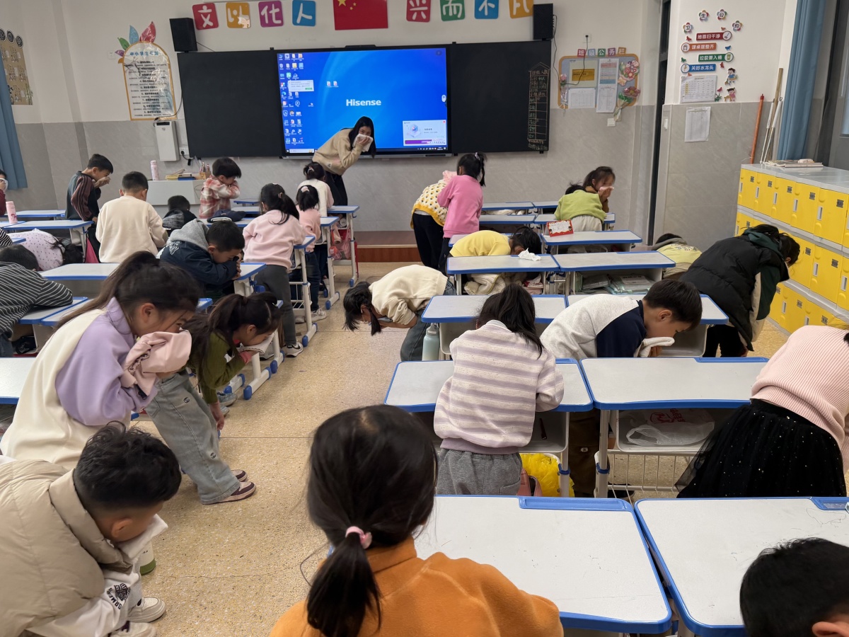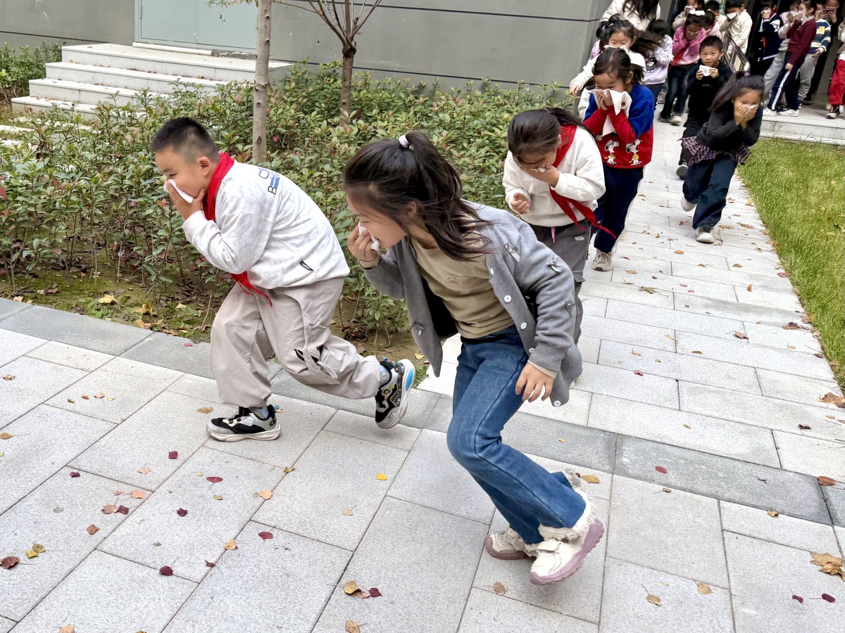 11月4日周二下午第二节课,消防安全教育持续升温。各班班主任利用10分钟“安全微课堂”,通过图文课件、案例讲解、互动问答等形式,向学生详细普及火灾预防知识、初期火灾扑救方法,以及火场逃生的核心技巧——“捂口鼻、低弯腰、贴墙走、不拥挤”。讲解刚结束,一阵急促的消防警报声突然响彻校园,实战化消防疏散演练正式启动。各班老师迅速组织学生拿出提前准备好的湿毛巾捂住口鼻,保持弯腰低姿,按照预定疏散路线快速、有序地向操场安全区域撤离。楼道内,定点值守的引导老师全程保驾护航,不断提醒学生“不推挤、不慌张、听指挥、快通过”;操场上,学生们抵达安全区域后立即列队,班主任第一时间清点人数并快速上报,整个疏散过程紧张有序、规范高效。相较于以往,同学们的动作更标准、反应更迅速,展现出良好的应急素养和协作能力。