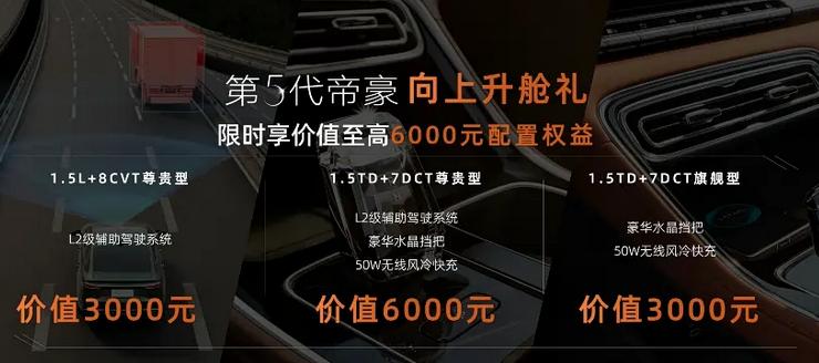 11月5日,我们从吉利汽车官方了解到,旗下紧凑型轿车全新一代帝豪正式开启预售,共推出4款配置,预售价区间为7.79-9.49万元,限时先享价为6.89-8.59万。 全新一代帝豪长宽高分别为4815/1885/1480mm,轴距为2755mm,相比上代车型车长增加177mm,宽度增加65mm,高度增加20mm,轴距增加105mm。 内饰方面,该车采用全新的设计语言,平直的中控台线条搭配全液晶仪表以及14.6英寸悬浮式中控屏,搭载GEEA 3.0电子电气架构,并引入Flyme Auto智能座舱,并兼容小米、OPPO、vivo等12品牌Carlink及华为、荣耀HUAWEI HiCar无感连接。 配置方面,该车采用50W风冷无线快充、水晶挡把、打孔皮质座椅等。智能辅助驾驶方面,该车搭载L2级智能辅助驾驶系统。 全新一代帝豪基于新一代BMA Evo全球模块化架构打造,动力根据配置不同提供1.5L直列四缸发动机和1.5TD缸内直喷涡轮增压发动机供选择,前者最大功率为88千瓦,峰值扭矩为150牛·米;后者最大功率为133千瓦,峰值扭矩为290牛·米。传动方面,与1.5L发动机相匹配的是CVT变速箱;与1.5T发动机相匹配的是7速湿式双离合变速箱。悬架方面,全新帝豪采用前麦弗逊式独立悬架,后扭力梁式半独立悬架。 点个关注吧!汽节车社,车圈热点资讯每日一扫清!【来自懂车帝车友圈】