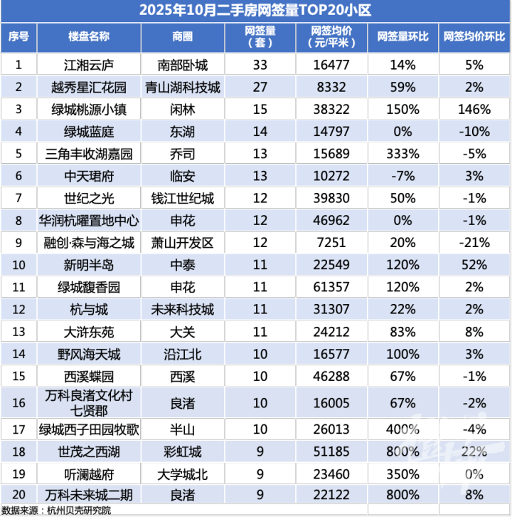 杭州贝壳研究院数据显示,10月份,杭州二手房十区网签量为5934套,环比下降7%,这是今年市场连续第七个月下行,与去年同期的9120套相比,降幅达35%。这除了国庆假期的客观因素外,还有政策空窗期、供大于求以及市场信心不足等原因。