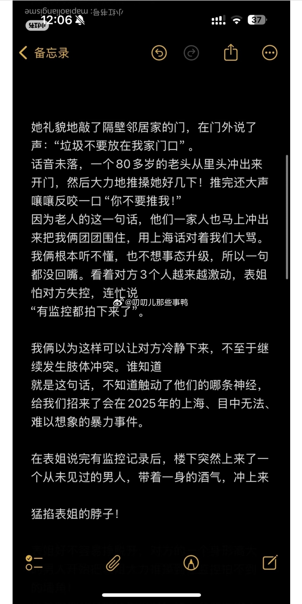 db生活组看到的帖子→上海🈶女生被邻居围殴,提醒一下在上海的姐妹避雷这个小区,
