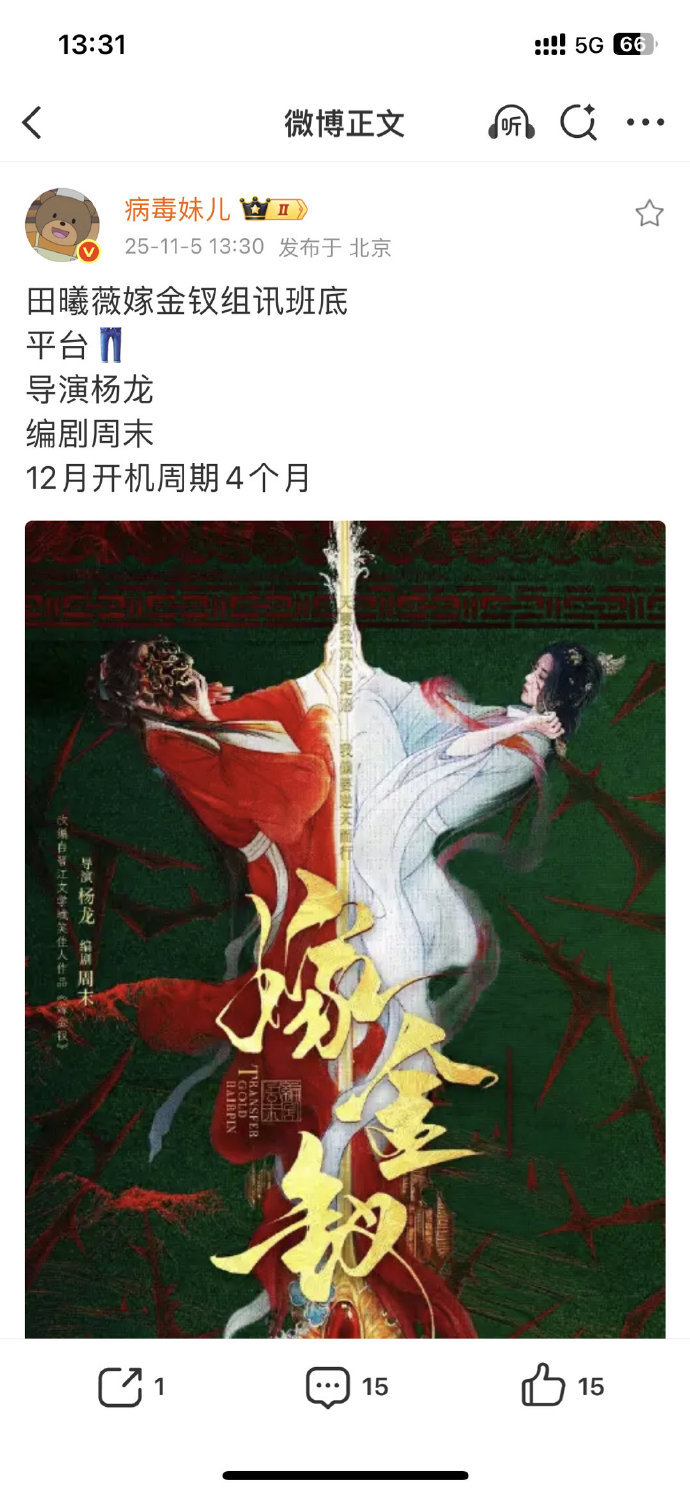 嫁金钗剧组出组讯田曦薇嫁金钗组讯班底田曦薇嫁金钗预计12月开机剧组组讯出炉,金牌班底加持,田曦薇加盟,12月开机,期待剧集呈现。