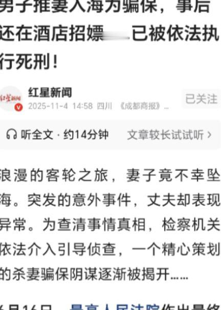 辽宁大连,一46岁离异女子在上海某餐厅打工,被44岁餐厅老板看上,老板和她结婚,为她买了巨额保险,如果女子死亡,赔偿金1230万,老板带她坐船,找了个监控死角,一把把她推到海里,男子以为天衣无缝,假装悲痛欲绝,三天就要火化妻子,谁知警方火眼金睛,根据细节,立刻将男子抓捕,而女子儿子和老板达成了协议,协议内容令人大跌眼镜! 那天傍晚,李某带着妻子李某环上了船。船行驶到离岸边数公里的地方,天色渐暗,岸边的灯火已经成了一片模糊的光点。 李某环扶着船栏,望着远处的波光,脸上带着些许笑意,还不时回头问:“老李,这地方真漂亮啊,我们结婚后还没这么出来过。” 李某只是笑笑,点燃了一支烟,眼神却闪烁着复杂的情绪。 就在那一刻,李某突然上前一步,伸手猛地一推。李某环来不及反应,发出一声惊叫,整个人直坠海中。 几秒后,李某的表情立刻变了,他开始撕心裂肺地喊叫:“救命啊!快救救我老婆!她掉下去了!” 他扑在船栏上,泪水、海风、汗水混在一起,看上去悲痛欲绝。 附近几艘渔船听到呼喊声,也纷纷靠拢过来,渔民们拿起救生圈、绳索,连忙报警。很快,海警的快艇疾驰而来,打捞人员下海搜寻。 当那具浸泡在冰冷海水里的身体被抬上甲板时,一切都结束了。李某环早已没有了呼吸,脸色惨白。 李某当场失声痛哭,扑在妻子的遗体上大喊:“你醒醒啊!咱还没去看我给你买的新衣服呢!” 他哭得声音嘶哑,身边围观的人无不动容。 有人摇着头叹气:“这老李,真是个有情有义的人,刚结婚没多久就遇到这种事,太可怜了。” 那一夜,码头的灯光亮了一整晚。李某一会儿昏倒,一会儿又哭着喊妻子的名字。海警人员只能安慰他先回船舱休息。 第二天清晨,李某的朋友们听到消息后,也纷纷赶到现场。有的拍着他的肩膀叹气:“兄弟,节哀吧。” 还有人私下议论道:“其实这女人他也真是看上了,不嫌她出身低,还真娶了回来。” 据朋友回忆,当初李某环在餐馆打工,干的是最辛苦的活儿——洗碗、打扫、跑堂。她识字不多,说话带着浓重的口音,平时也不太爱打扮。 李某那时已经四十出头,身边不乏人劝他找个条件好点的女人,可他却说:“她老实,会过日子,这样的女人才靠得住。”大家都以为李某是动了真情,还称他“重情重义”。 那几天,李某几乎天天往殡仪馆跑,哭得声嘶力竭,还对外宣称要为妻子办一场体面的告别仪式。 他的“深情”模样,让不少人都信以为真。有人甚至在社交平台上留言:“这样的丈夫,世上少有。” 没人知道,这一切不过是李某苦心经营的一场戏。 当尸体被送至法医鉴定中心后,一切开始出现疑点。法医在解剖过程中发现,李某环的颈部有明显的指痕,口鼻部位也存在被强行捂压的痕迹,肺部进水量远低于正常溺亡标准。 这一切都说明,她在落水前已经失去了呼吸——也就是说,她并非意外落海,而是死后被推入水中。 这一发现让警方迅速警觉,立即将调查重点转向李某。通过复查案发当天的船只监控,警方发现李某曾刻意避开摄像头,在一个无监控区域停留数分钟。 而在那之后,妻子便“意外落水”。警方立刻对李某实施讯问。 起初,李某仍旧装作悲痛,反复强调妻子是“不小心滑倒的”,但当警方出示法医报告时,他的情绪出现明显波动,额头渗出冷汗。 更令人震惊的是,警方在调查李某的财务记录时,发现他最近为妻子购买了数份人身保险,总额高达1230万元,受益人全部是他本人。 而在李某的手机中,还找到了一份签名文件——那是一份他与李某环儿子签下的“协议”。 协议中写明:若保险理赔成功,李某将分给李某环儿子一部分赔偿金,甚至愿意抵押房产,先行垫付60万元。 警方据此断定,李某早已策划好整起骗保谋杀案。他先取得妻子信任,与其结婚,再以“夫妻出海游玩”为名制造事故现场,妄图骗取巨额赔偿金。 最终,真相水落石出。李某以残忍的手段谋财害命,被依法逮捕。