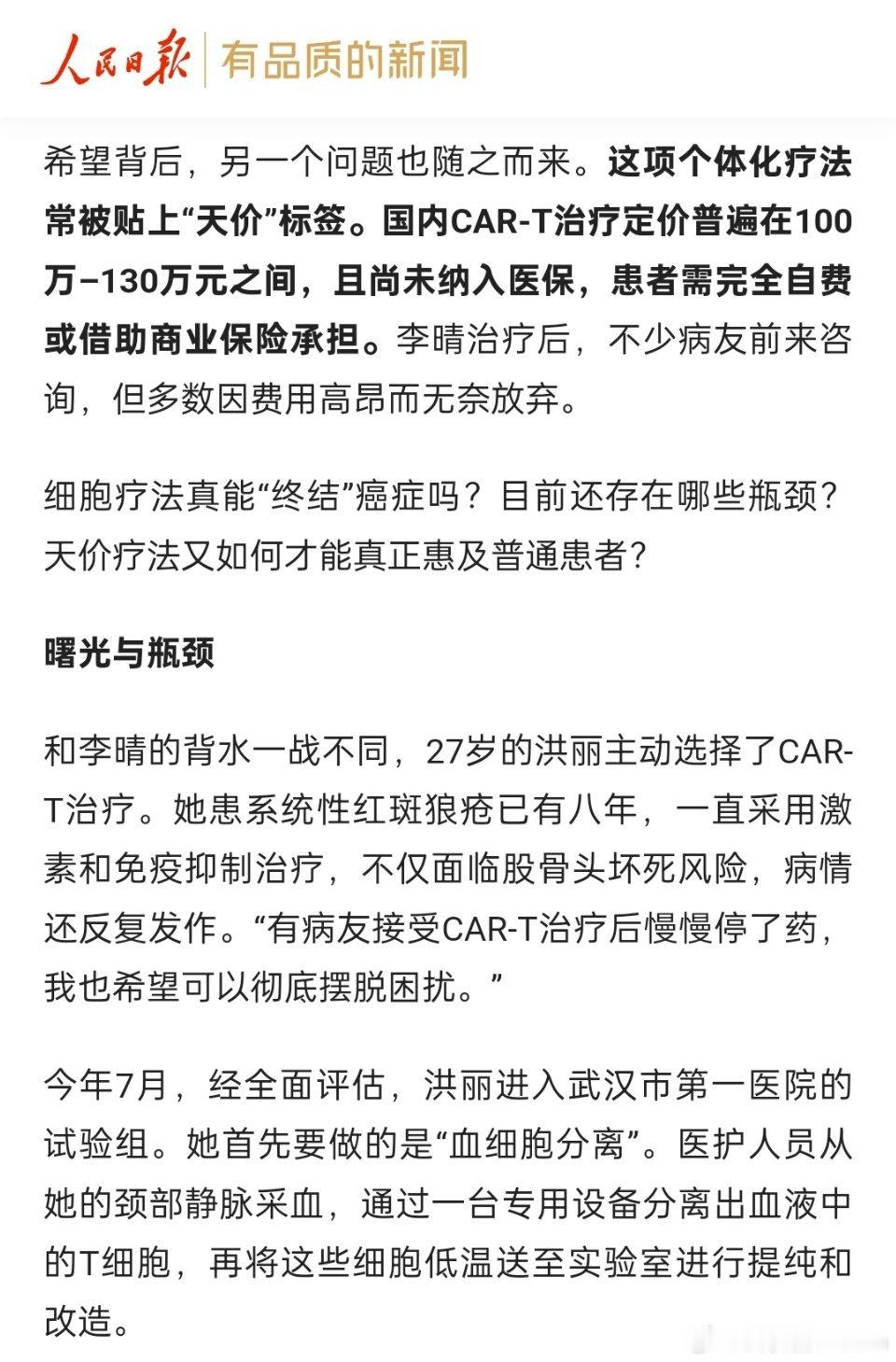 抗癌针🔻看了新闻报道,抗癌针是真的,但国内CAR-T治疗定价普遍需要120万一针,且尚未纳入医保,很多癌症患者根本用不起。
