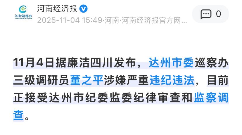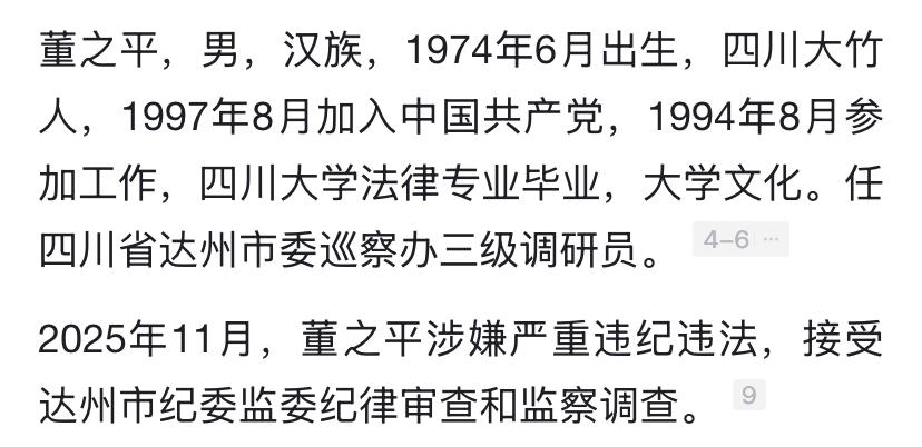 刚刚四川省达州市的董之平出事了 董之平之前在四川省达州市大竹县开江县渠县工作了多年 曾在达州地区经历了很多岗位 他本应该恪尽职守 为达州的发展贡献力量 没想到他却不好好的工作 想着利用职务便利做一些不能做的事情 达州是一座人文荟萃的川东名城 达州的同学告诉我 他以前在渠县见过两次面 感觉他平时是一个很低调的人 只是没想到他竟会做出这样的事 他的行为完全辜负了大家的期望 不知道好好珍惜这来之不易的工作位置 现在他估计也非常后悔了吧 这也提醒了我们 不管在什么位置上 都要本本分分的工作
