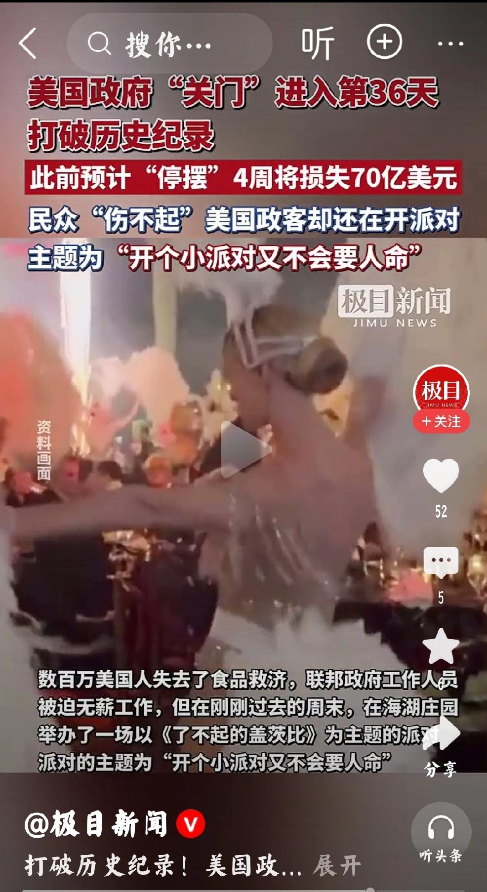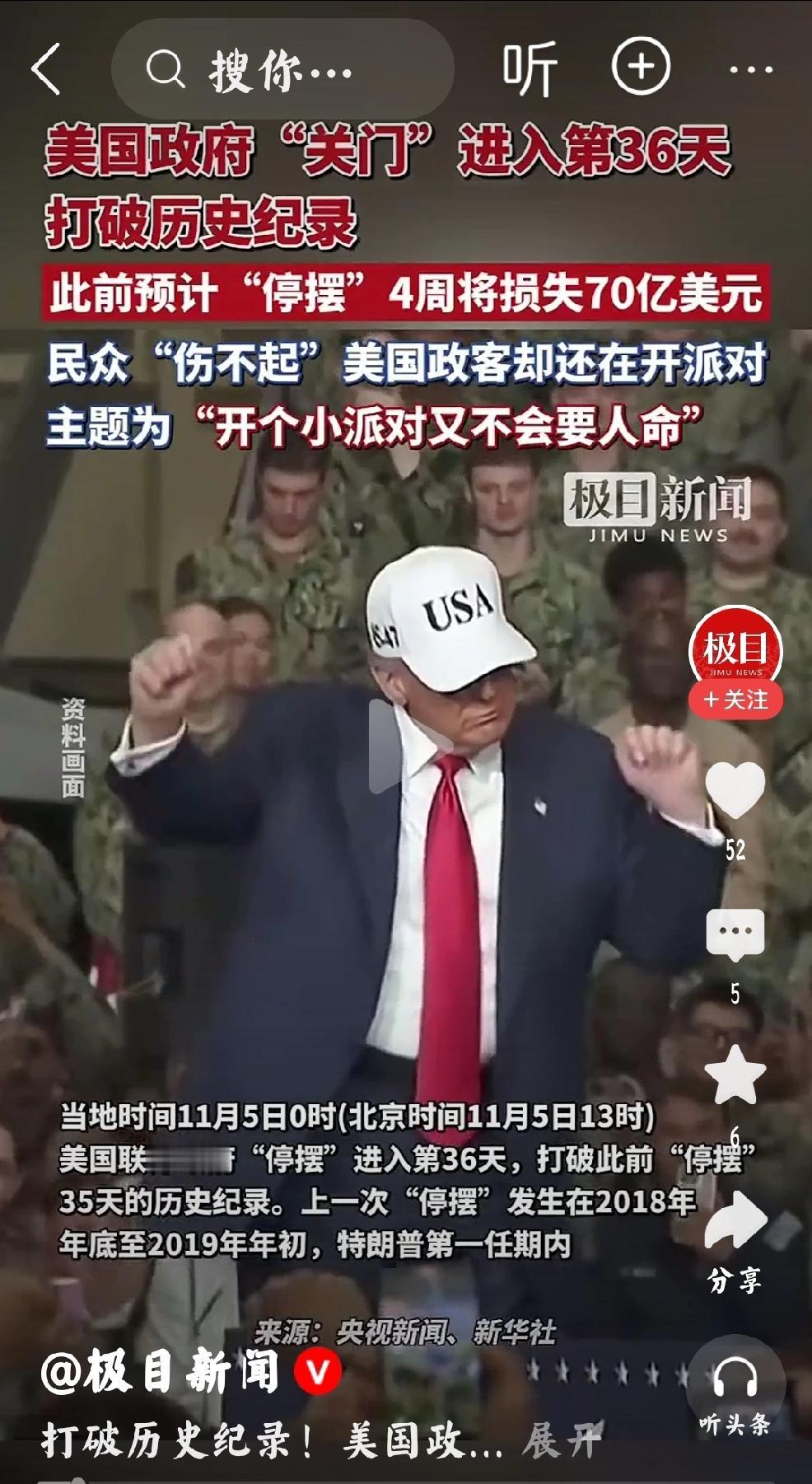 特朗普用派对应对奥巴马的言论 个人观点:这是全球民众,难得一见的奇观。奢侈无比的派对,美国股市的全线下跌,政府继续停摆,两党内斗-死不妥协,重要的选区被民主党控制。 美国民众“伤不起”,“等不及”。 什么时候停止?这会导致美国有大事发生。