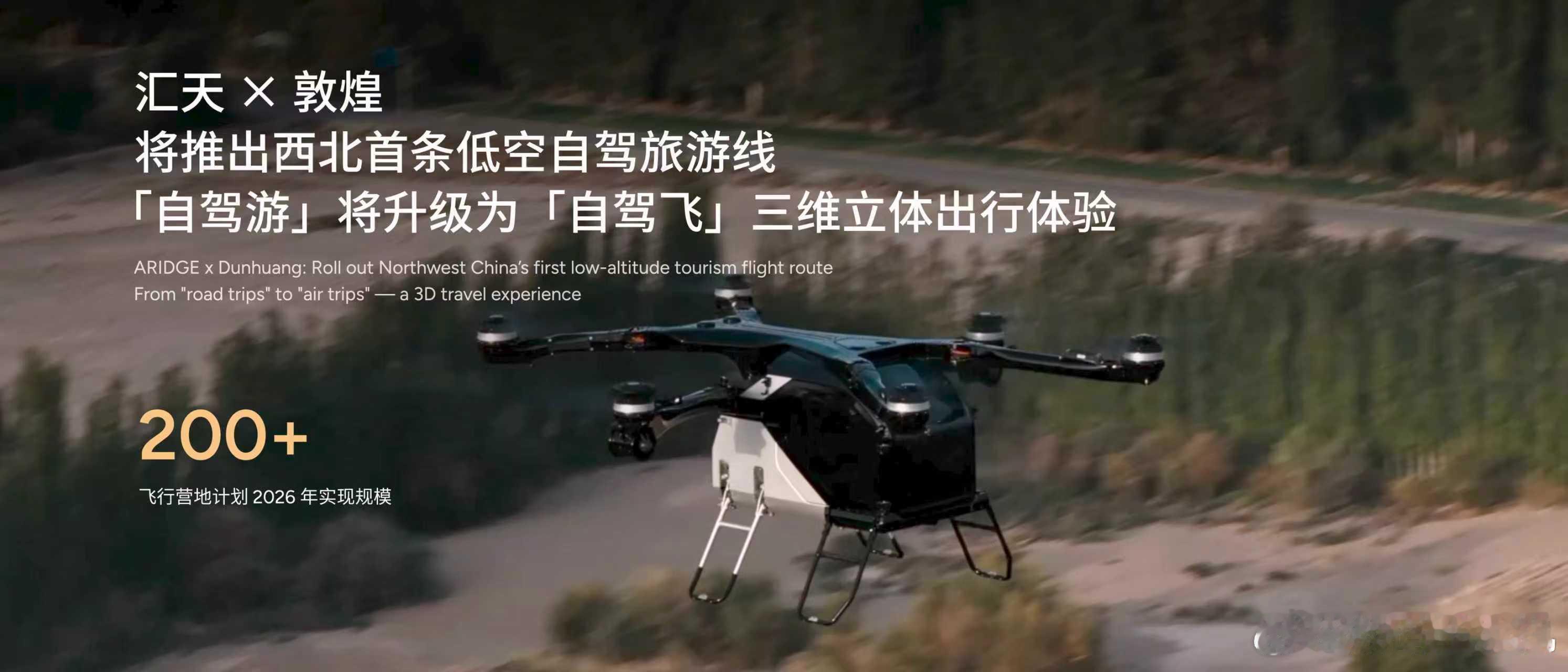 🌟汇天将于2026年启动建设5大飞行营地,于敦煌推出西北首条低空自驾旅游线。