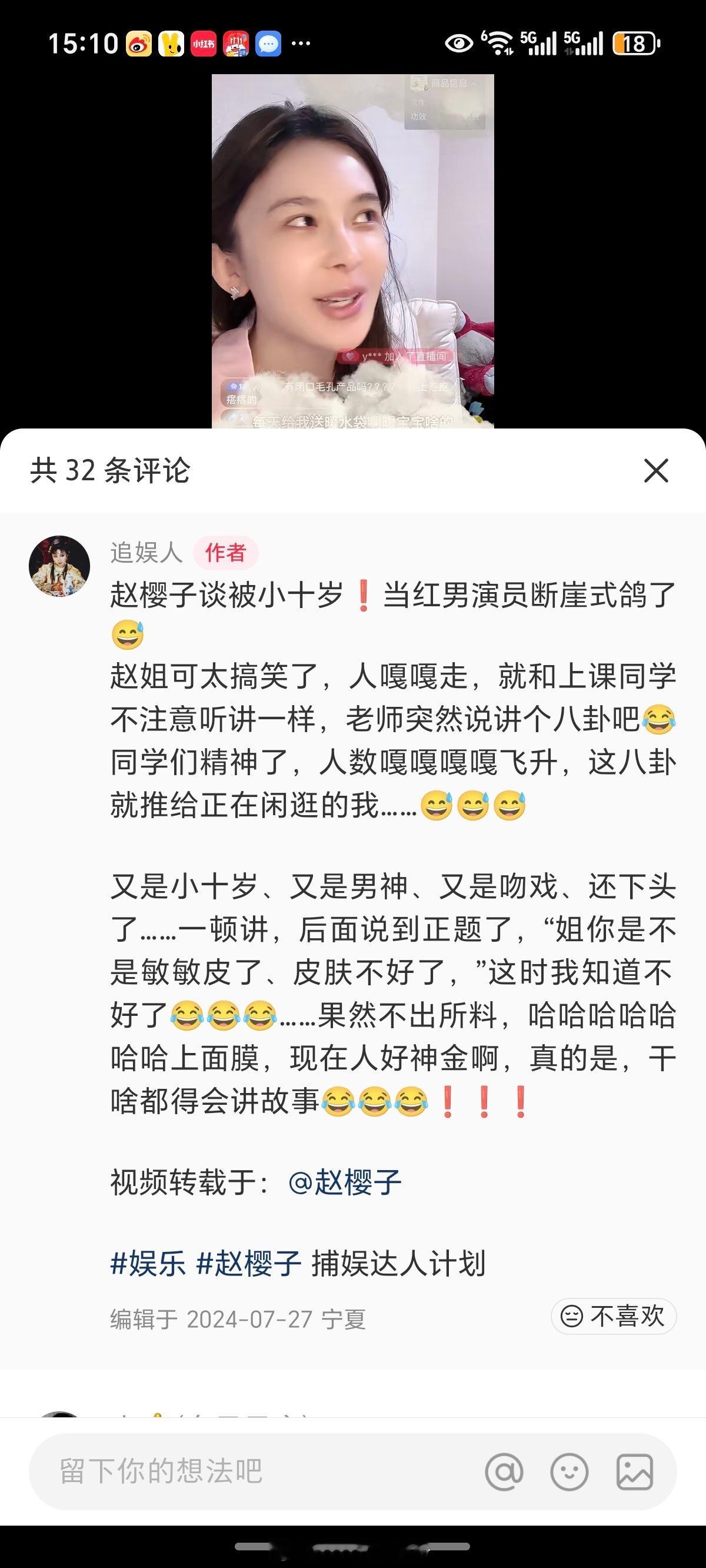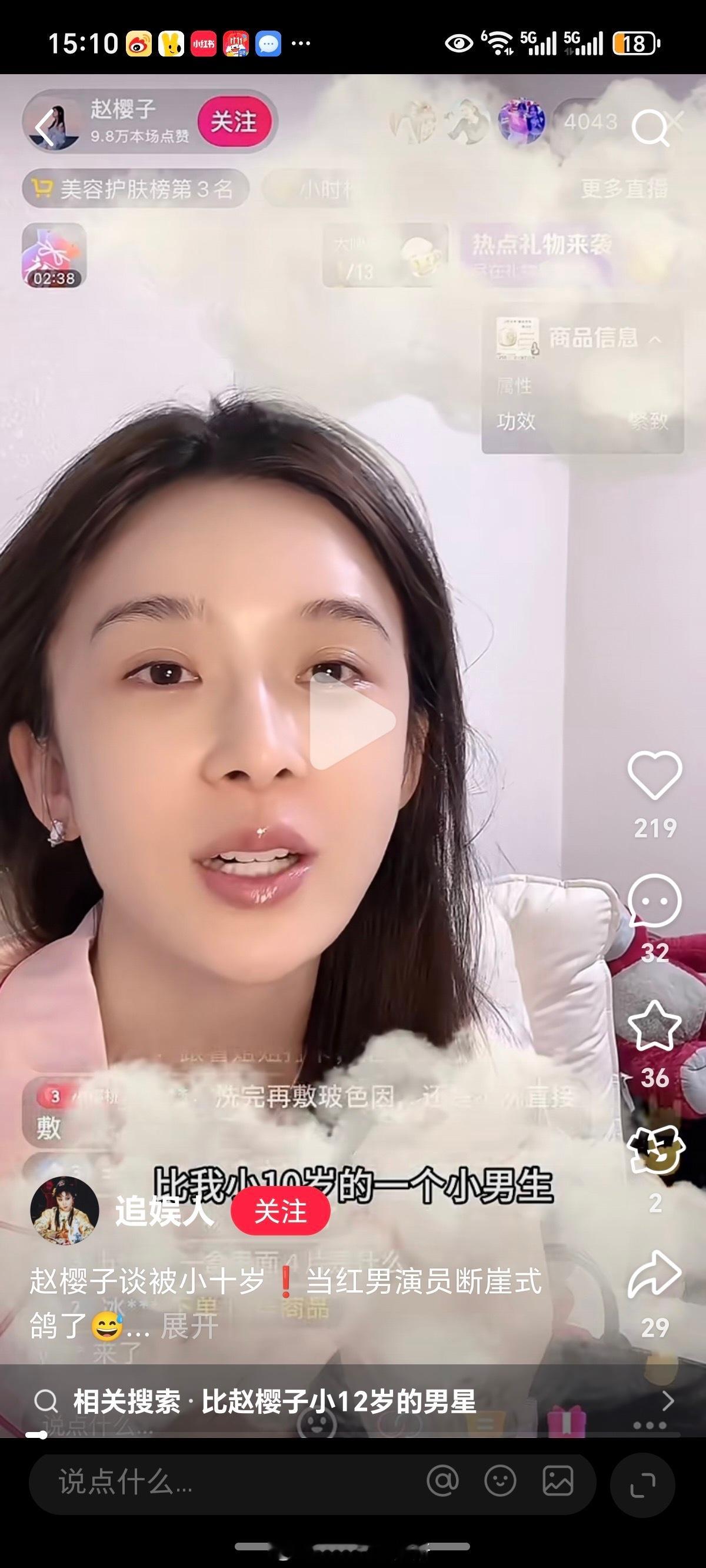 赵樱子去年7月说谈了小十岁的当红男星被分手,今年又改了话术说小11岁,但是张康乐去年那个时候是18线开外,并不符合她说的 简直是无妄之灾
