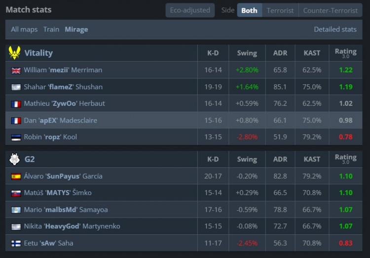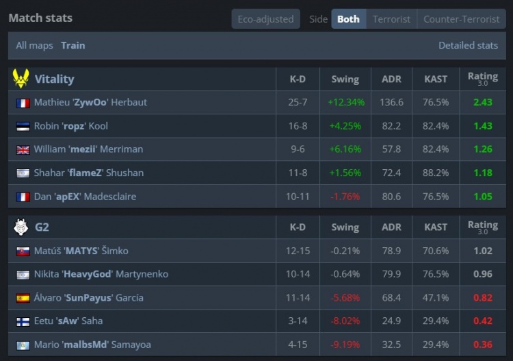 Vitality:mezii、apEX、ropz、flameZ、ZywOo