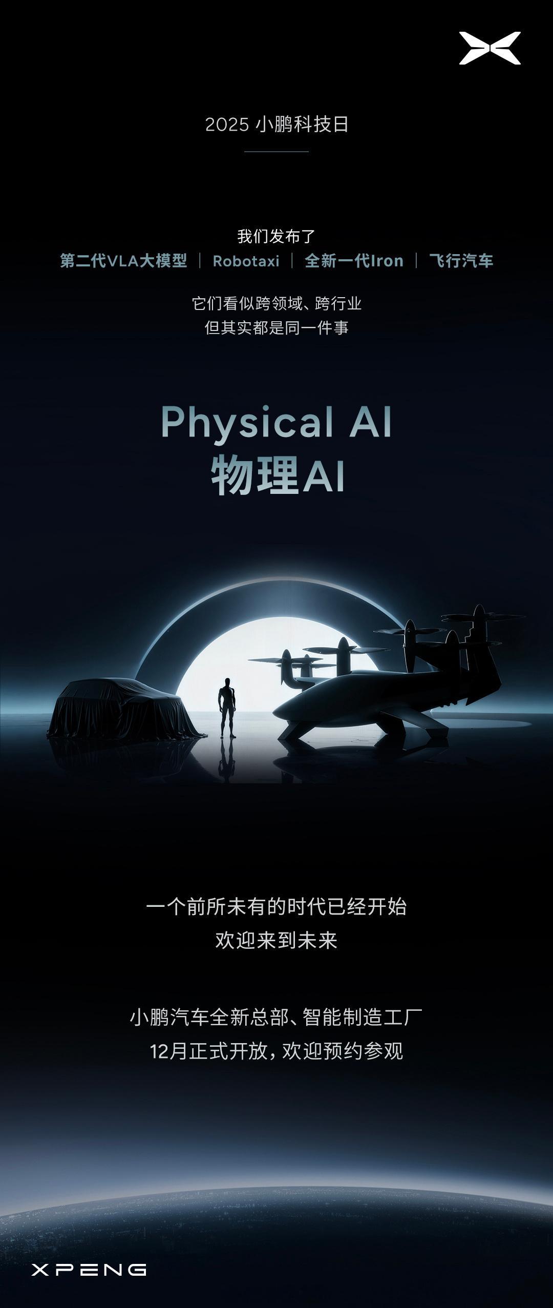 未来,小鹏希望做物理AI世界的出行探索者,目标成为面向全球的具身智能公司。12月小鹏汽车将正式开放全新总部、智能制造工厂,可预约参观。