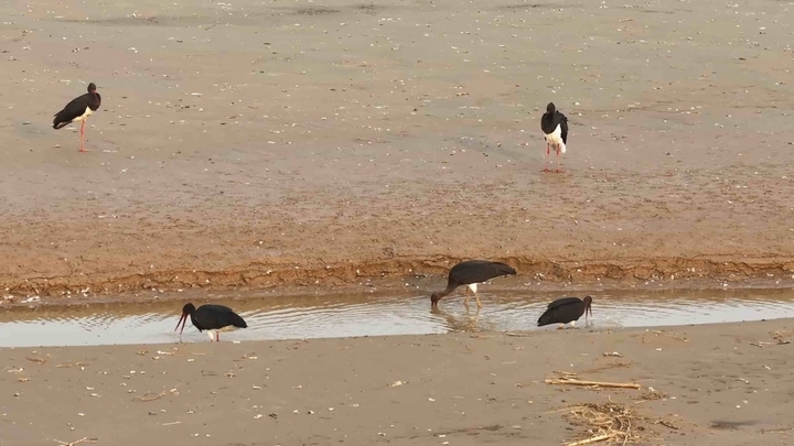 11月5日,菏泽市东明县林业局森林保护站传来消息:监测人员在长兴集乡黑岗村黄河段首次发现国家一级保护动物黑鹳的身影,6只优雅的成鸟在湿地浅滩从容觅食、栖息,成为黄河岸边最灵动的生态名片。