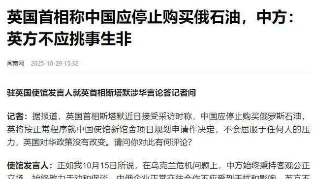英国首相斯塔默表示,已经与特朗普电话沟通过,一致认为中国不能够继续购买俄罗斯石油,以迫使俄罗斯做出结束战争的举动 说起这个电话,其实是2025年10月26日的事。斯塔默和特朗普聊了乌克兰局势,焦点落到俄罗斯石油收入上。俄罗斯打仗靠卖油挣钱,2024年油气收入占财政30%,达到11.1万亿卢布,比前一年涨26%。西方早制裁了,但俄罗斯转卖给亚洲买家,钱还是源源不断。中国是头号买家,2024年中国从俄罗斯进口原油2.2百万桶/天,占中国总进口17.9%。特朗普刚上台,就对罗斯石油和卢克石油下黑手,欧盟跟进19th包制裁,设价格上限47.6美元/桶。两人觉得,要真掐住俄罗斯,得让中国停购,否则战争机器转不停。 这个共识不是空谈。俄罗斯财政赤字2024年扩到3.7万亿卢布,军费每天烧钱如流水。如果中国不买,俄罗斯出口45%没了,收入直线掉。印度2024下半年已减购,导致俄罗斯月收入下滑4%。中俄贸易2024年前10月占俄罗斯对外34%,翻倍增长。中国买油不光便宜,还稳住能源安全。但美英压力大,觉得中国是最后杠杆。斯塔默在采访里说,这能让乌克兰处境好转。特朗普也提,要跟中国领导人聊这事。说白了,就是想借中国手结束战争,避免西方再多掏腰包。 欧盟2025年10月升级制裁,禁俄罗斯液化天然气从2027年起,还拉黑更多公司。英国跟进,制裁11家中国企业,帮俄罗斯绕道。俄罗斯油轮改用影子船队,避开西方保险。但中国国企最近暂停买罗斯和卢克油,回应美国制裁。俄罗斯2025年9月油气预算收入跌23%,前9月总跌20.5%。战争到2025年,已三年多,俄罗斯占乌克兰19%土地,东部推进慢。乌克兰用爱国者导弹防空,守住波克罗夫斯克。俄罗斯用巡航导弹反击,但经济压力上身。 中国使馆回应斯塔默言论,说英国别挑事,该撤对中国企业制裁。中国坚定维护权益,继续买油,但部分国企已停购受制裁油。特朗普说要跟中国领导人谈,11月在韩国见。中国2025年前7月从俄罗斯进口原油3200万吨,比2024少400万吨,份额降17.5%。俄罗斯计划2025年增对华出口,稳住收入。但西方民调显示,能源价高是欧洲头疼事,通胀压民众喘气。美英共识想转嫁压力,让中国当调解人。