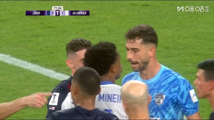 什么情况?米内罗点球破门,随后与柔佛门将争执,两队发生冲突