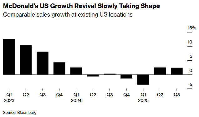 为了重塑“平价餐饮首选地”的品牌形象,麦当劳近年来积极推出促销活动和优惠套餐。其中包括在8月下调部分套餐价格,并推出“"买一加一仅需1美元”的优惠活动,适用于香肠饼干、双层芝士汉堡等商品。尽管餐饮支出整体趋缓,这些措施似乎已开始取得成效。该公司首席执行官ChrisKempczinski在周三发布的声明中表示,麦当劳正“在充满挑战的环境中实现可持续增长”。