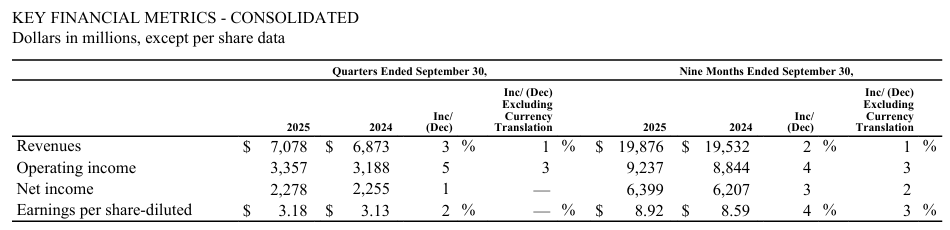 国际餐饮巨头麦当劳(MCD.US)公布了2025年第三季度业绩。财报显示,麦当劳Q3营收同比增长3%至70.78亿美元,不及分析师普遍预期的70.95亿美元。营业利润为33.57亿美元,同比增长5%。净利润为22.78亿美元,同比增长1%。调整后的每股收益为3.22美元,不及分析师普遍预期的3.32美元。