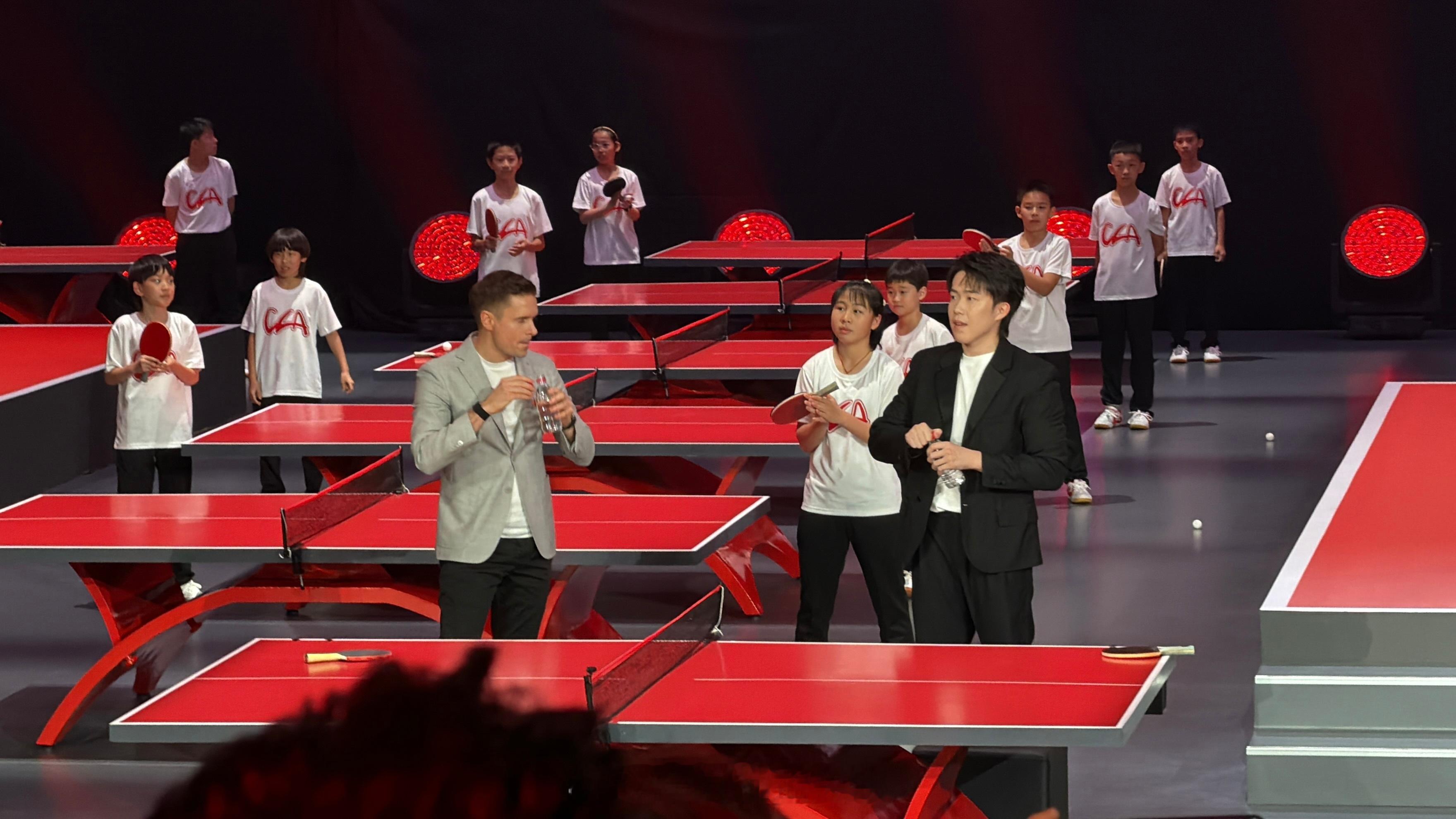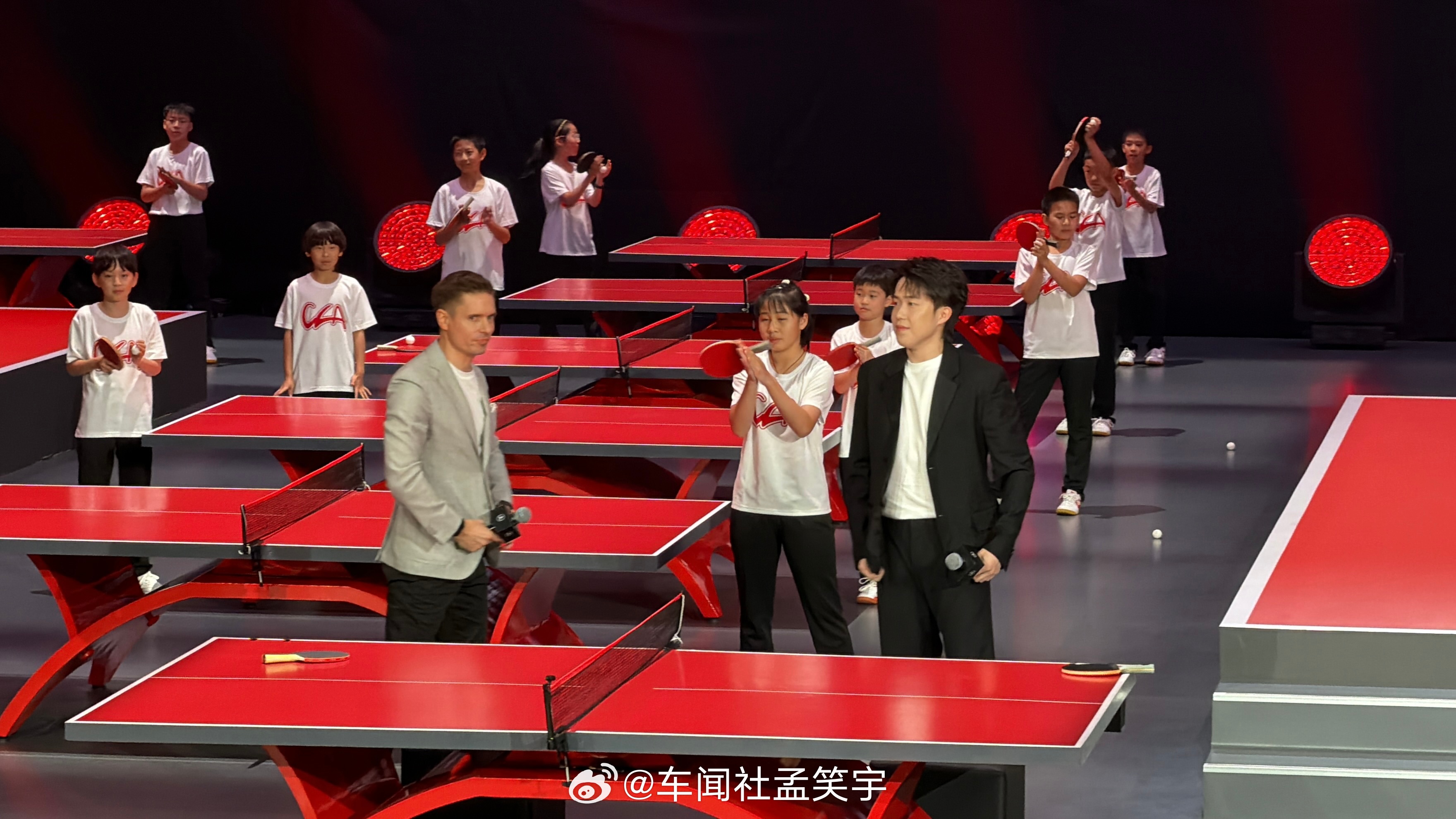 孩子们都好喜欢王楚钦,王楚钦摸摸孩子的头,一脸的有爱。和董事长一起候场,举