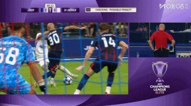 第22分钟,柔佛新山左路传中,雅伊罗禁区中得球抽射破门!但随后被吹越位无效!随后导播给的回放完全没有交代清楚↓