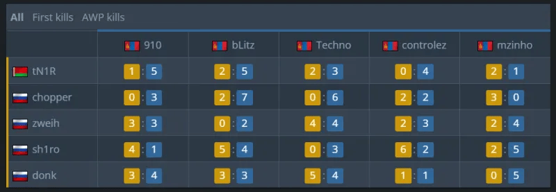 TheMongolZ作为进攻方开局策划B区攻势,绿龙回防失败丢掉手枪局。绿龙第二局强起失败被迫进入经济局,经济局后绿龙B区防守再出纰漏,TheMongolZ开局建立4分的比分优势,绿龙叫出暂停。暂停回来绿龙先丢一句情况下,绿龙成功顶住TheMongolZ拱门的进攻拿下防守方第一分。但下一局防守再次被TheMongolZ突破,绿龙接连丢分,上半场已经1-7落后,绿龙被迫再次叫出暂停。暂停回来,绿龙顶住压力连续取得两分,上半场比分定格为4-8,TheMongolZ领先进入下半场。