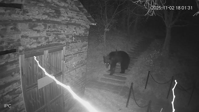 民警到达现场后,通过回放监控视频发现,当天18时,一头体型庞大的黑熊出现在街津口北山景区后山废弃小屋旁边的岔路口,在岔路口徘徊了不到一分钟就在监控画面中消失了,随后查看景区其他监控,均未发现黑熊的踪迹。由于黑熊出现的位置离山下的村子直线距离不超过300米,一旦黑熊因为寻找食物下山进村,很可能造成人畜的伤亡。随即,民警一方面与上级公安部门以及驻地乡党委政府、林业部门进行汇报,另一方面通过就近村屯的微信群发布警示,让群众注意安全。