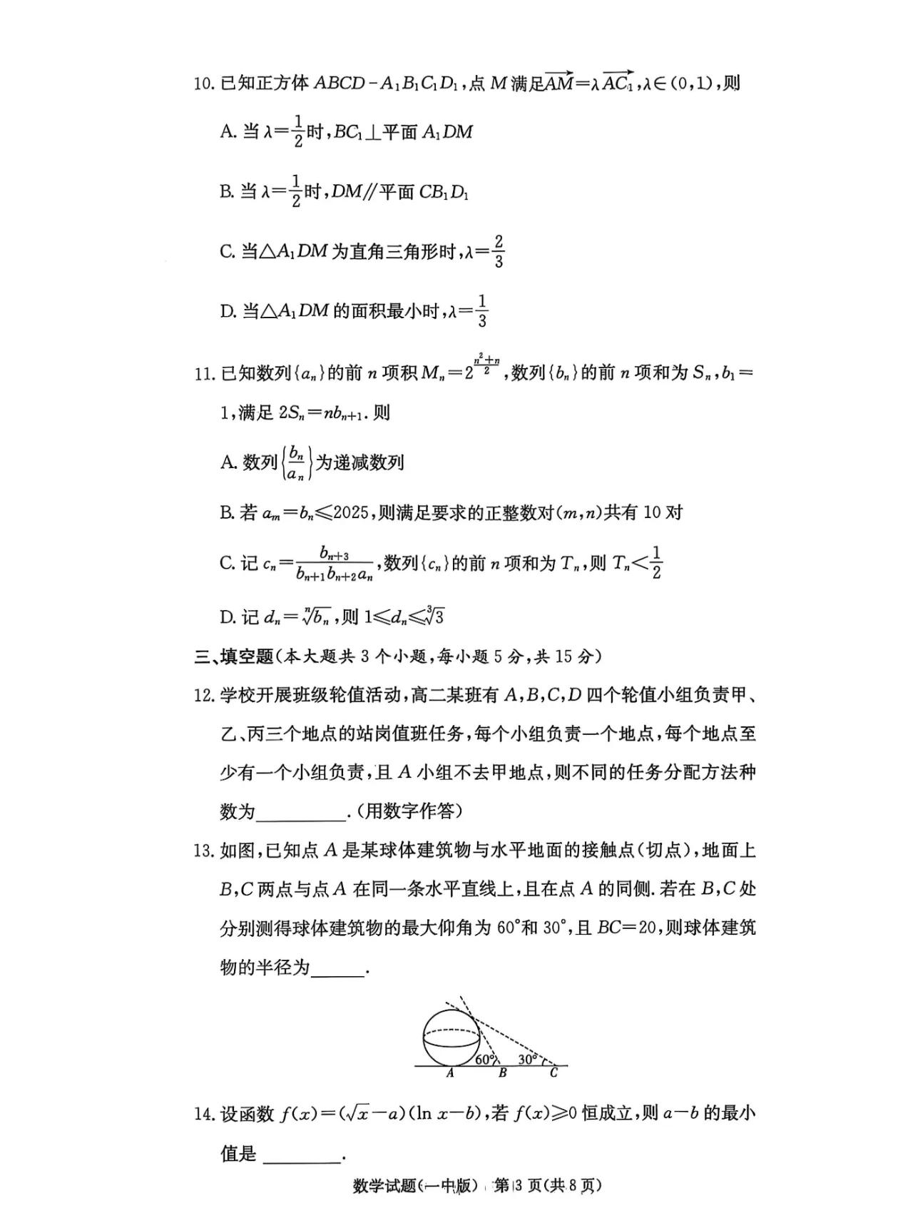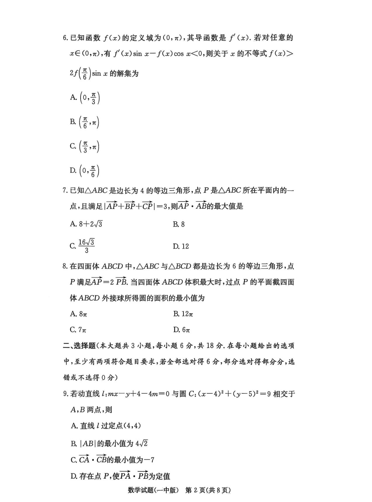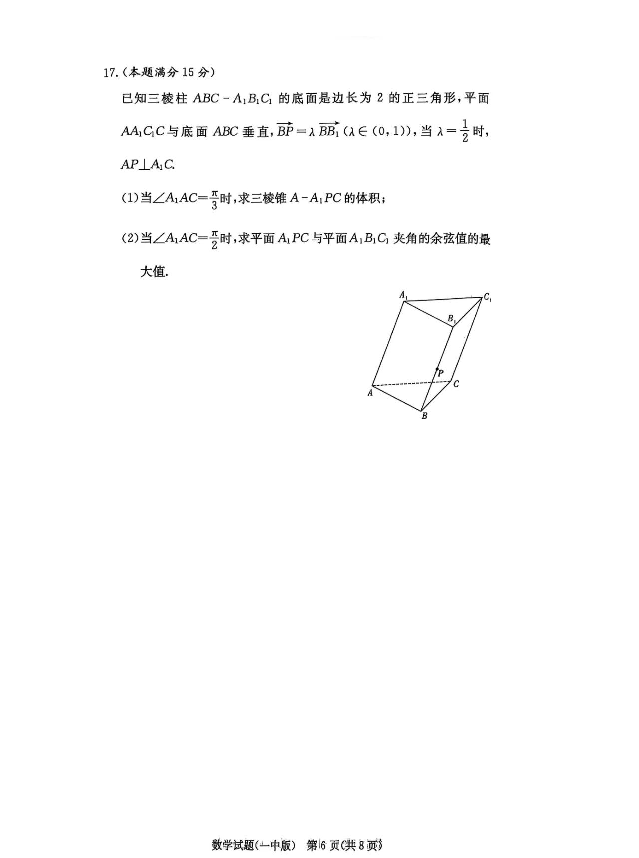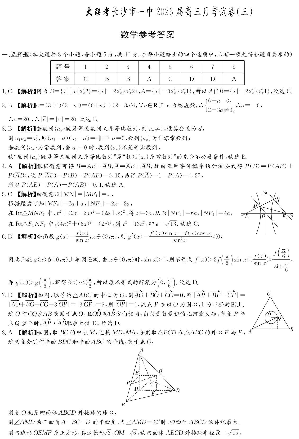 湖南省第一中学2023级高三数学试题及详细解答,长沙。