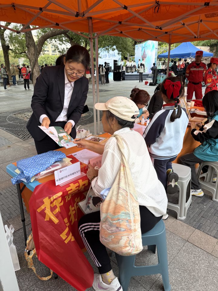 “以前总听说存款保险,今天听你们讲完,才算真明白——咱们存在中行的钱,有国家制度兜底,放心!”10月29日上午,杭州上城区吴山广场人头攒动,“上城尚礼·走向吴山”大型便民服务市集在这里举行。中国银行杭州市城东支行作为中国银行扎根上城区的管辖支行,积极响应街道及区委宣传部(区文明办)号召,让市民们在沉浸式体验与互动中感受了来自中行的金融服务温暖。