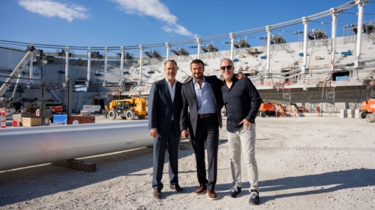 迈阿密国际足球俱乐部的新主场迈阿密自由公园,将在未来两周内完成另一个重要的建设里程碑。球场顶棚的最后一根梁正在被俱乐部的三位老板豪尔赫-马斯、何塞-马斯和大卫-贝克汉姆签名后吊装到位。这些签名位于公司理念“梦想自由”之下,由管理合伙人兼迈阿密本地人豪尔赫-马斯亲自刻在梁上,象征着推动迈阿密国际足球俱乐部和迈阿密自由公园不断迈向新高度的灵感。