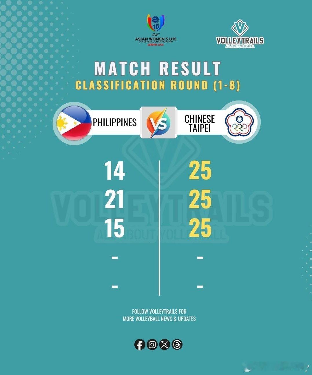 U16女排亚锦赛,日本女排3-0横扫泰国,中国台北女排3-0横扫菲律宾,两队在排