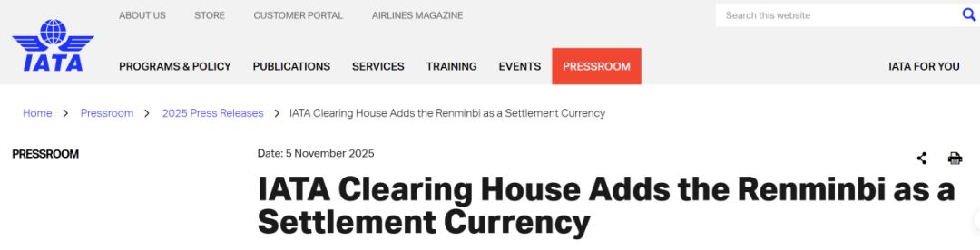 11月5日,国际航空运输协会(IATA,以下简称国际航协)宣布,将新增人民币作为国际航协清算所(ICH)可供航空公司及其他供应商使用的结算货币之一。