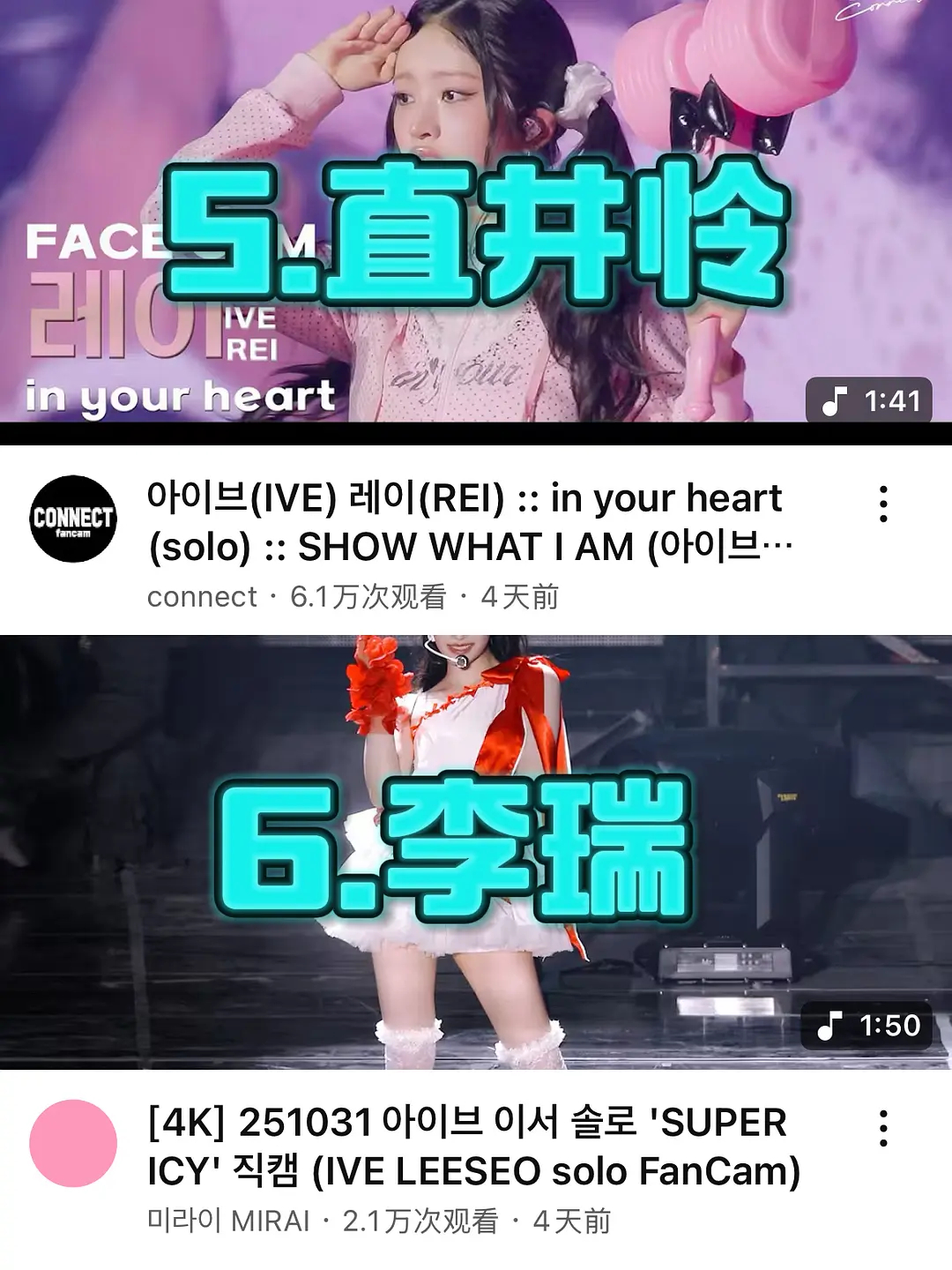 IVE 成员 SOLO直拍排名📊金秋天 wdcc芙新一实至名归
